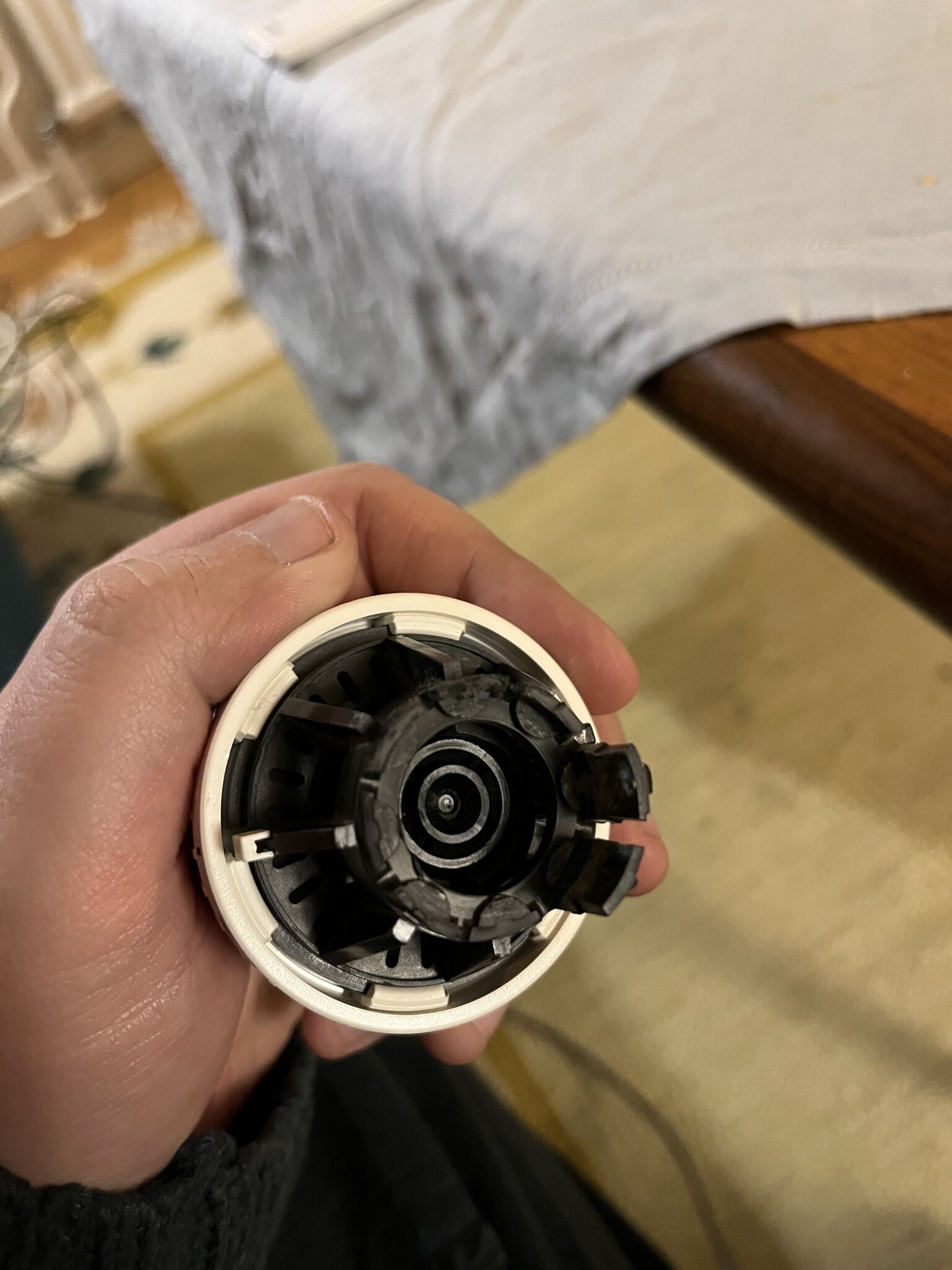 Hej! Gick för att vrida av värmen på ett element, äldre modell. Termostaten föll av och går inte att få dit igen. Blir att skaffa ny såklart.