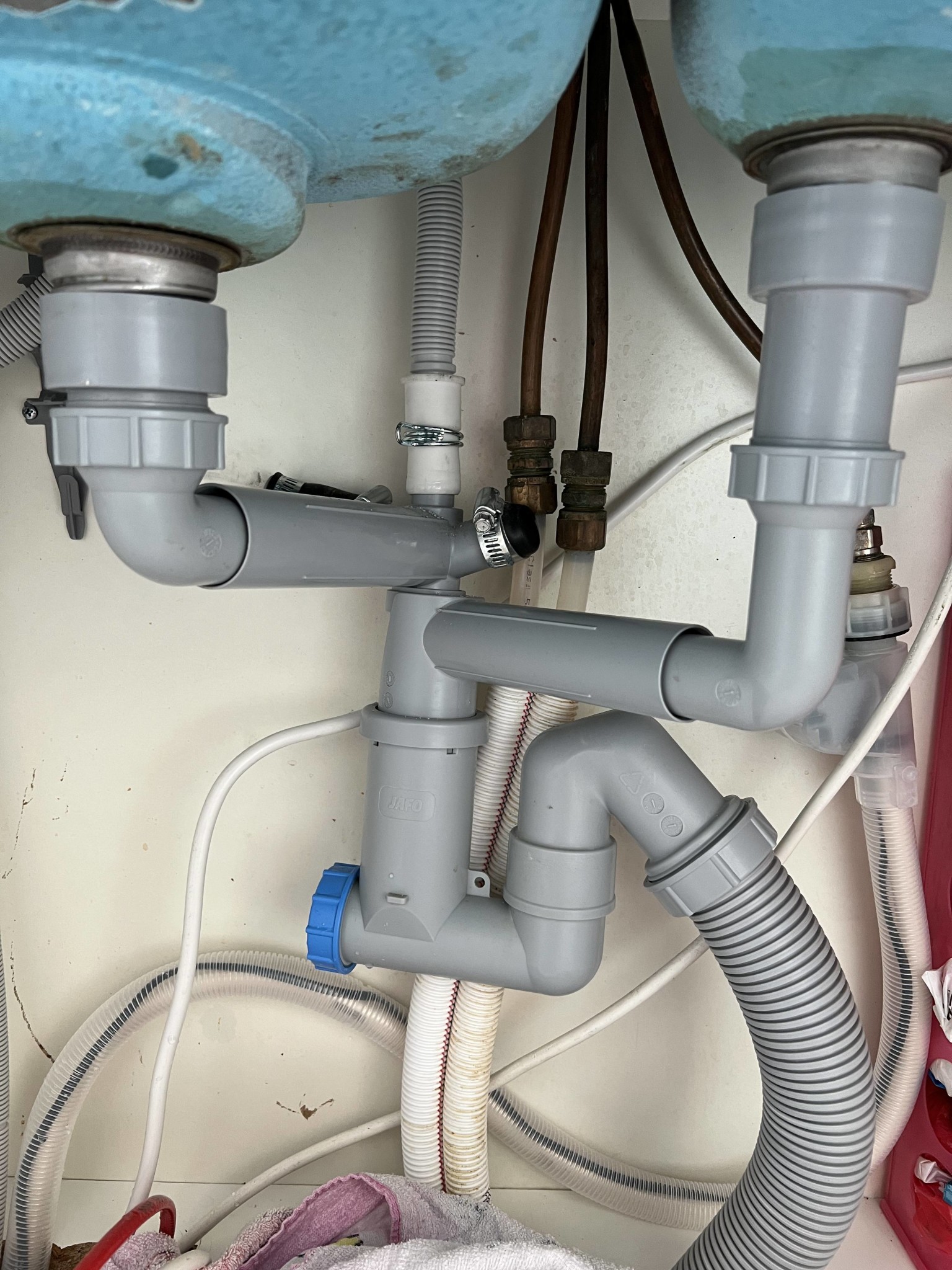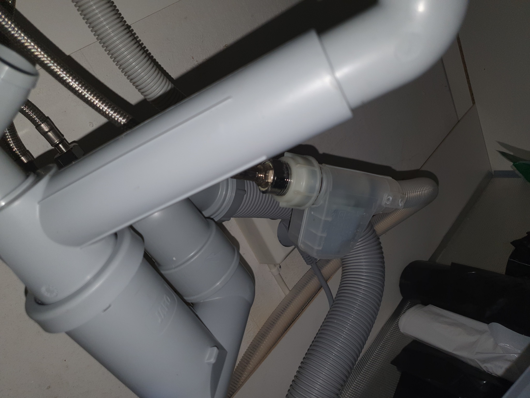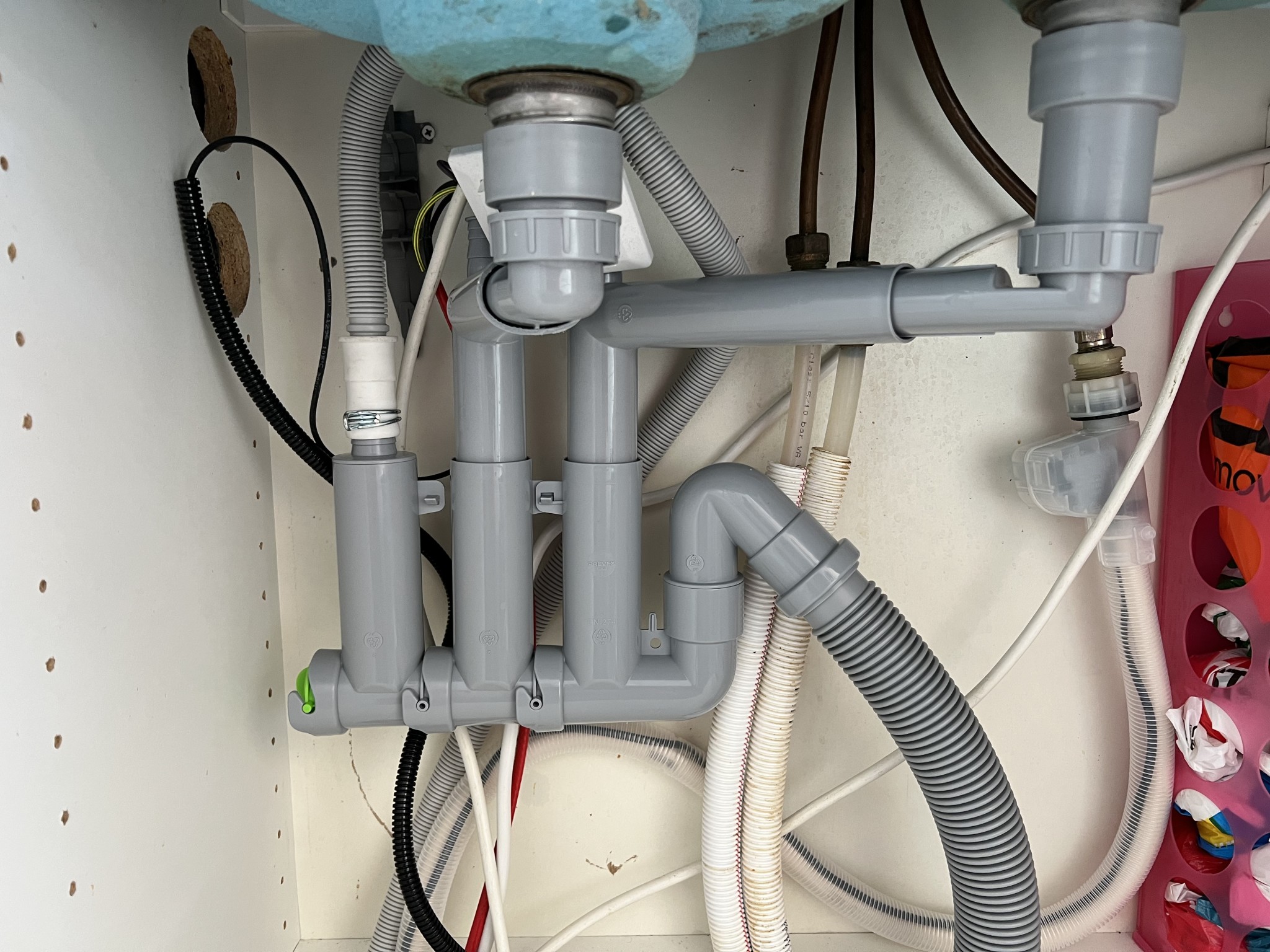tricket att få separerat vaskarnas avlopp från diskmaskinen samtidigt som man har vattenlåset kvar. Var på väg att ge upp, men…