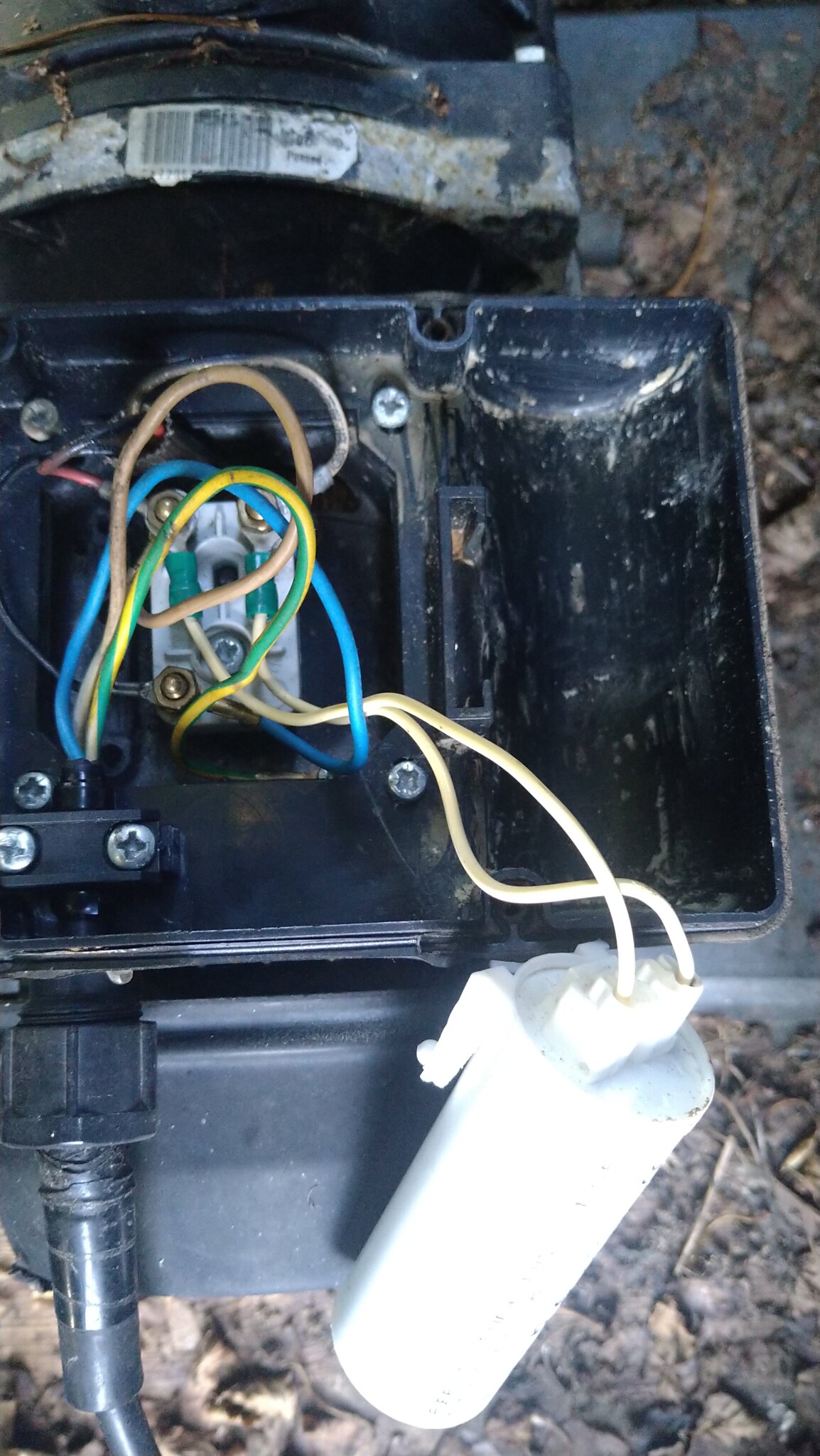 Funderar på orsak och samverkan här... Antar att den gått upp i varv och blivit varm. Eller så har något lager kärvar ihop och pumpen har stannat med strömmen på. Leder det till att kondensatorn exploderar/brinner upp, och varför då i så fall?