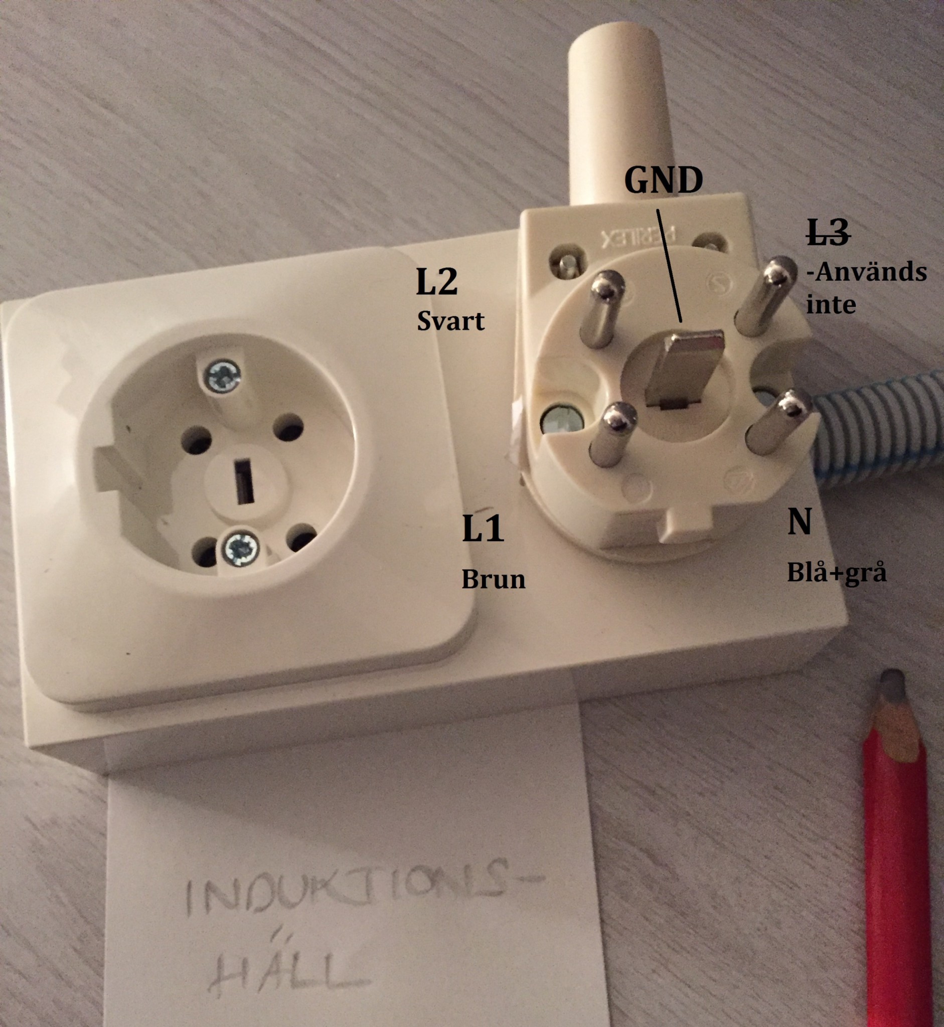Till vår Folklig induktionshäll har han förberett med följande (se bild), där kabeln ska anslutas till proppen. Hur löser jag det själv?