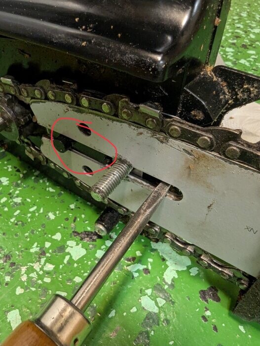 EDIT: är det inte dessutom just den piggen som den excentriska delen i kåpan (den du markerade med sylen) ska ta tag i? Fattar dock inte helt hur den delen i sig ska flytta svärdet, vanligen brukar väl spännaren dra i det av oljehålen som inte används för olja, ser inte riktigt om denna del gör det…
