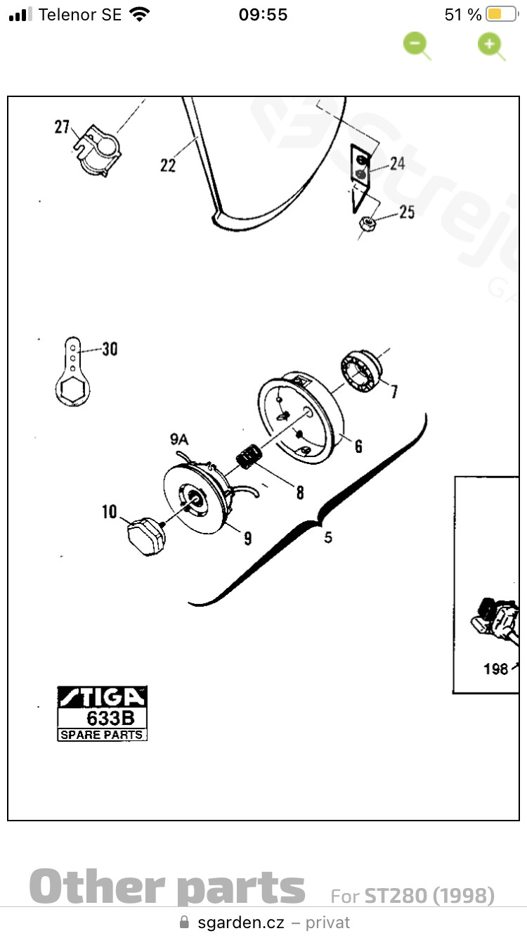 Köpte mig en begagnad grästrimmer, en Stiga st 280. Det var dock slut på tråd i den och det tänkte jag ju att det skulle va enkelt löst men där stod jag som ett fån och lyckas verkligen inte få upp ”locket” till trådfunktionen.