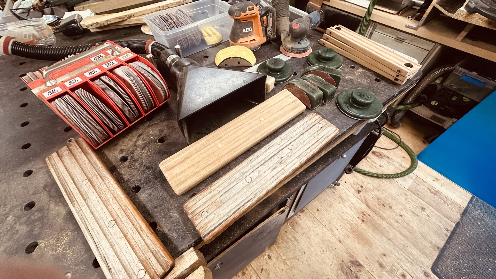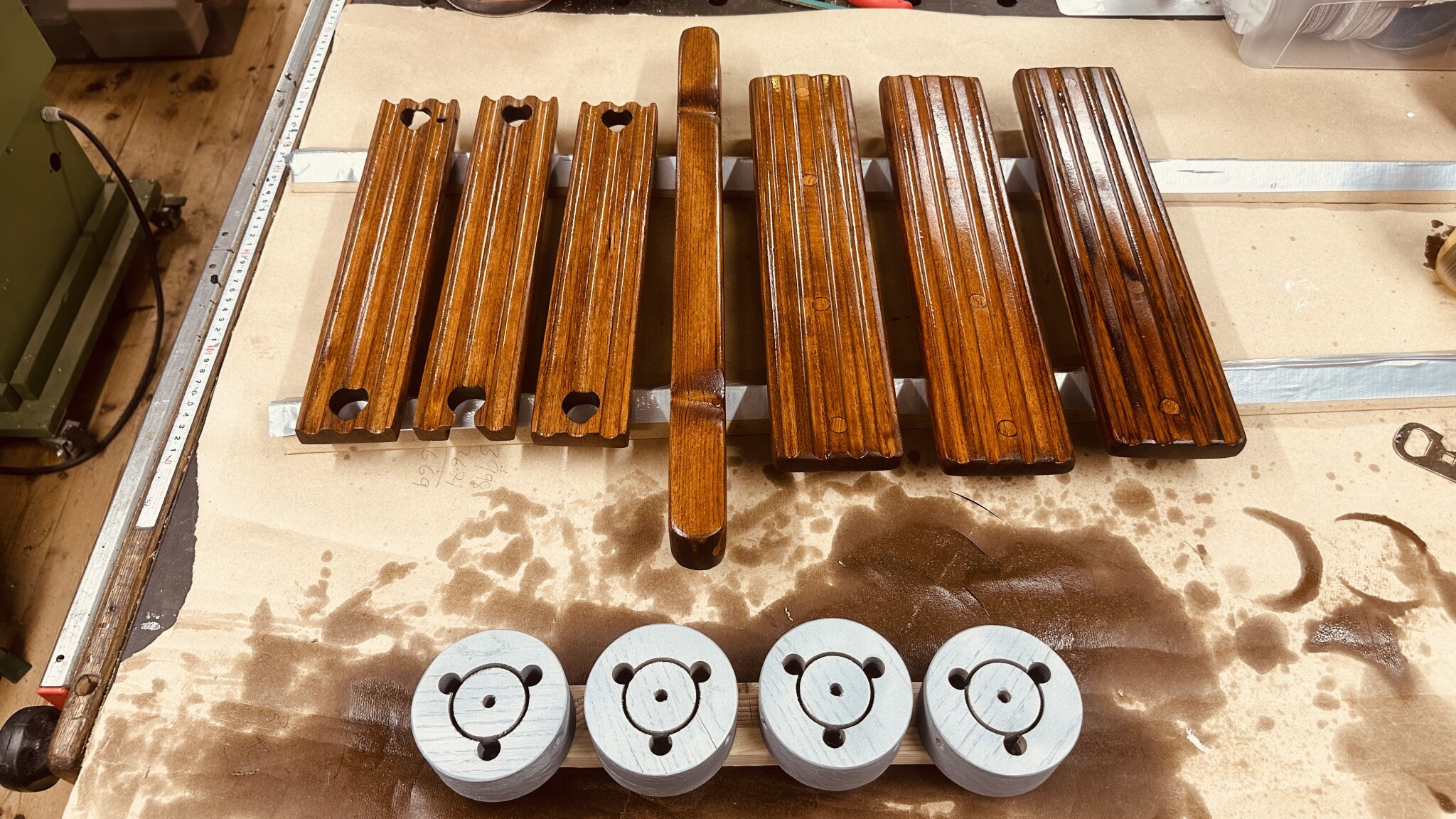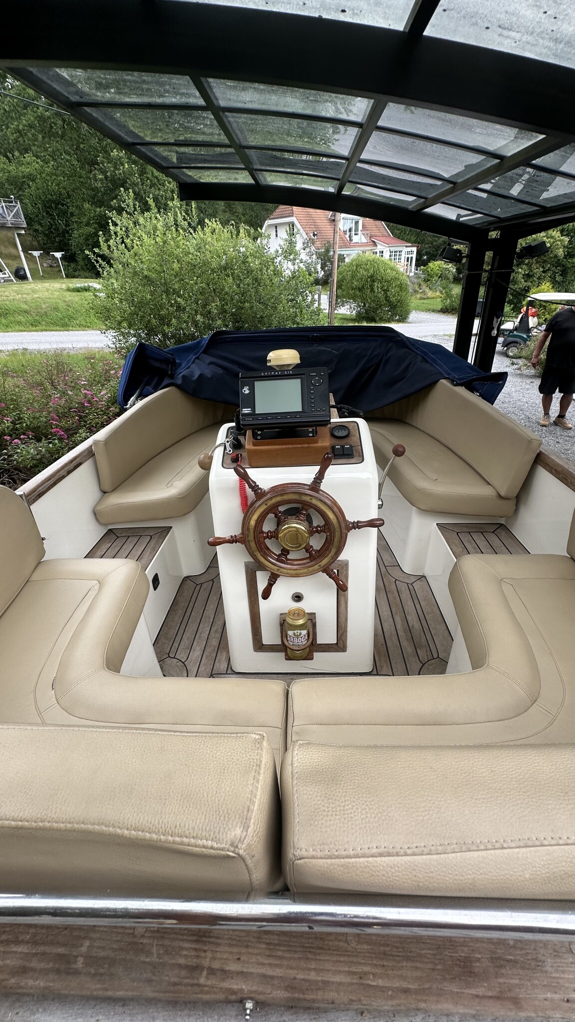 Som avslutning blev det en ny omgång utspädd Benar på teakbitarna samt några nya armstöd till båtens möbler.