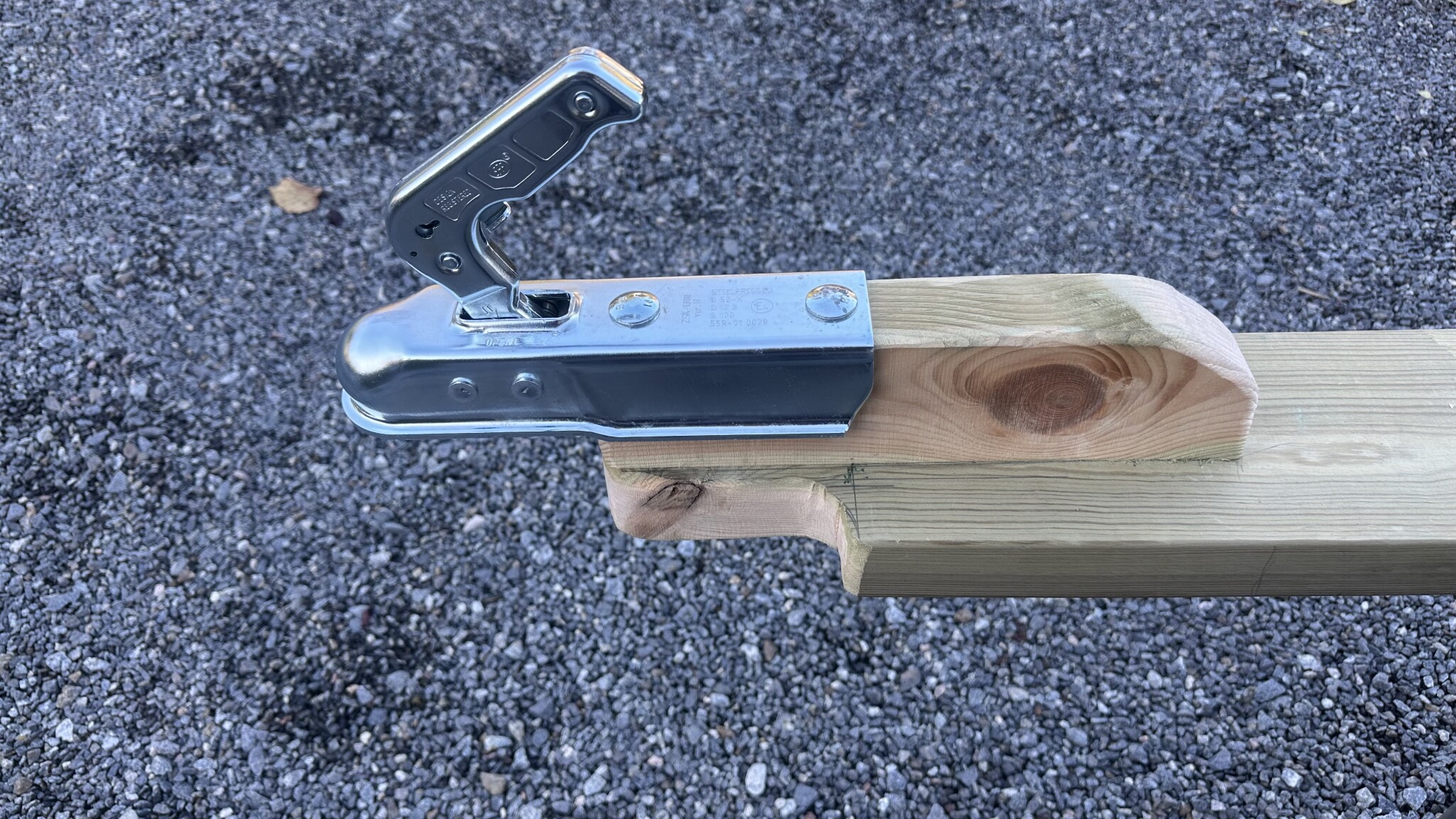 Vagnens dragstång skulle enkelt, en låspunkt, kunna föras in i vagnen när den inte användes för att spara på utrymme.