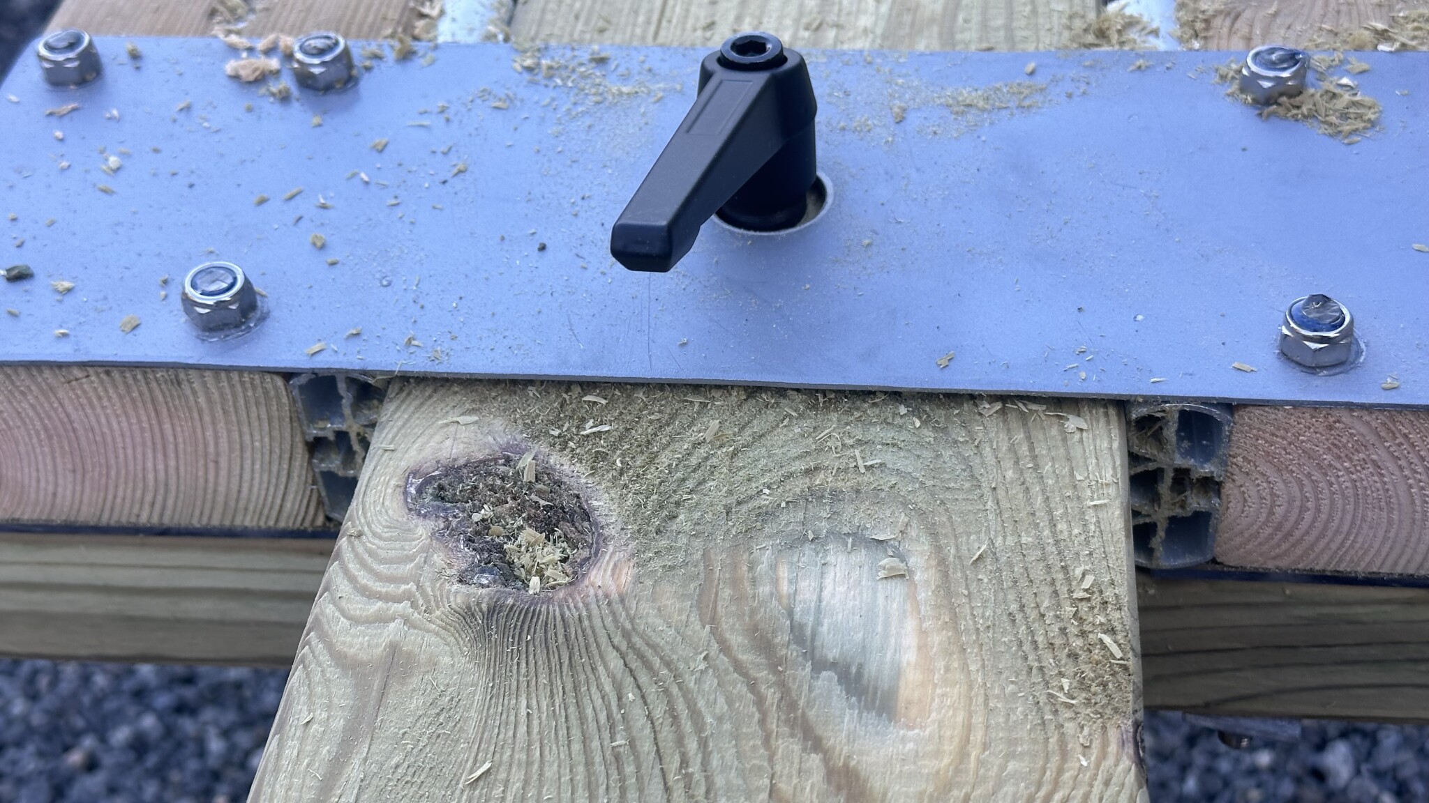 D: Slutligen borrades fästhålen 7mm för dom kommande 6mm fästskruvarna.