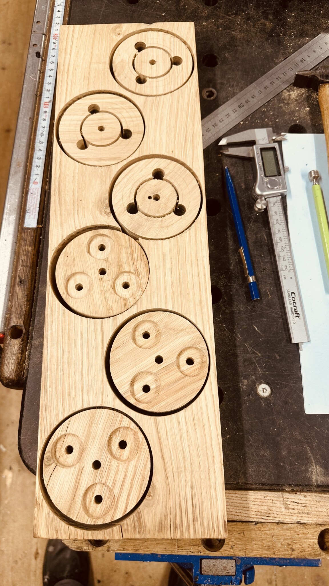 En viktig sak var att dom flesta borrmomenten skulle göras i var och en av dom 6 markerad adaptrarna med samma inställning av borr, hastighet och djup efter varandra för att adaptrarna skulle bli exakt lika.