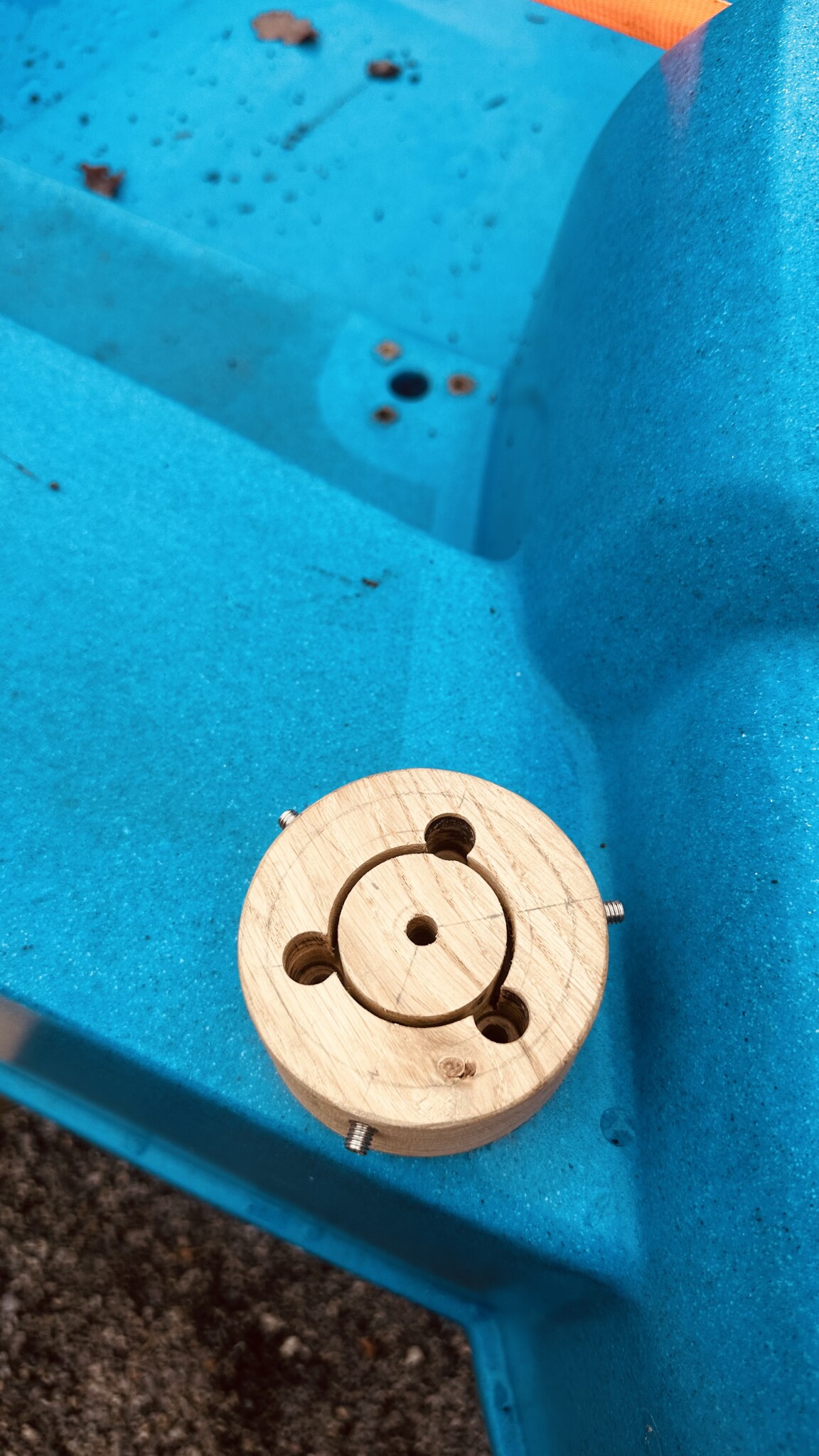 Då jag inte har utrustningen för att göra dessa adaptrar i metall i ”Snickerboa” så var det trä som gällde. Ek är ju ett stabilt och tåligt träslag som använts till båtar sedan urminnes tider. Wasa skeppet byggdes ju av ek.