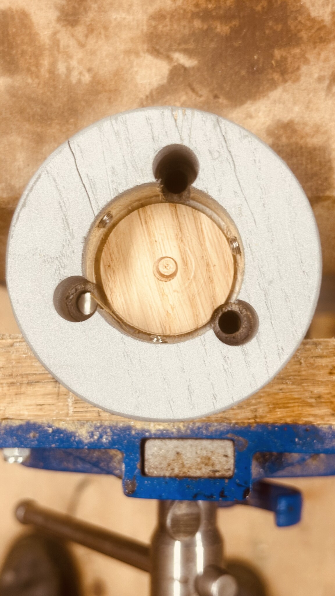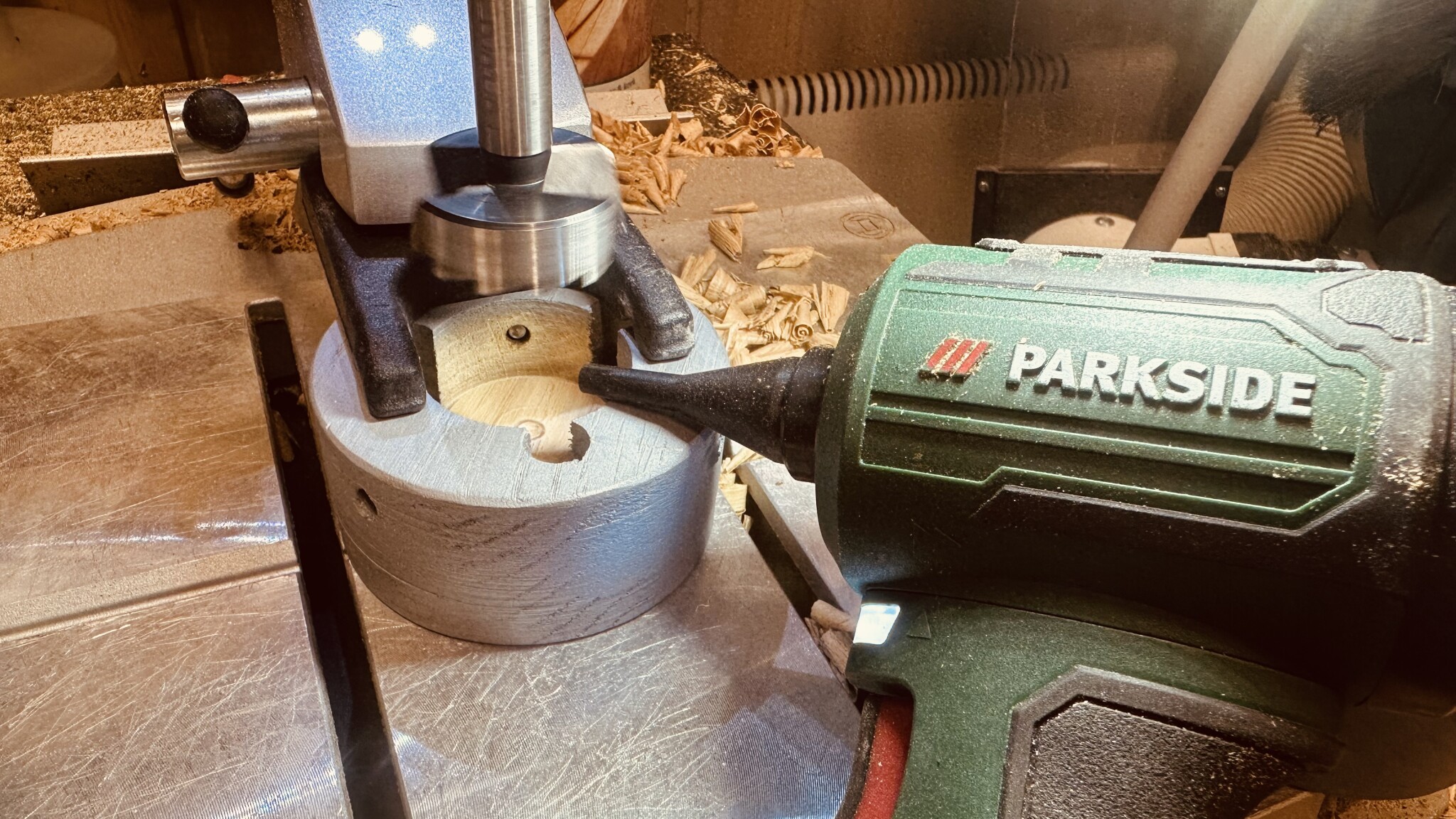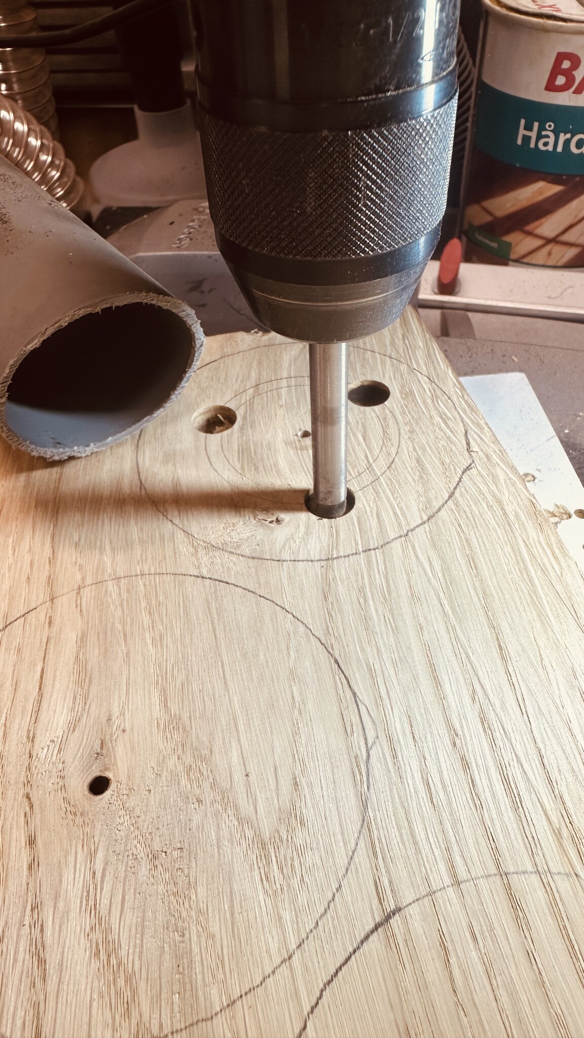 Jag fattade ett snabbt beslut att borra ut centrumbiten. Annars blir det nog för tight när det hela skall monteras.