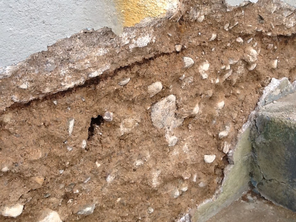 Det har varit en otäthet ovanpå muren som lett till frostsprängning.