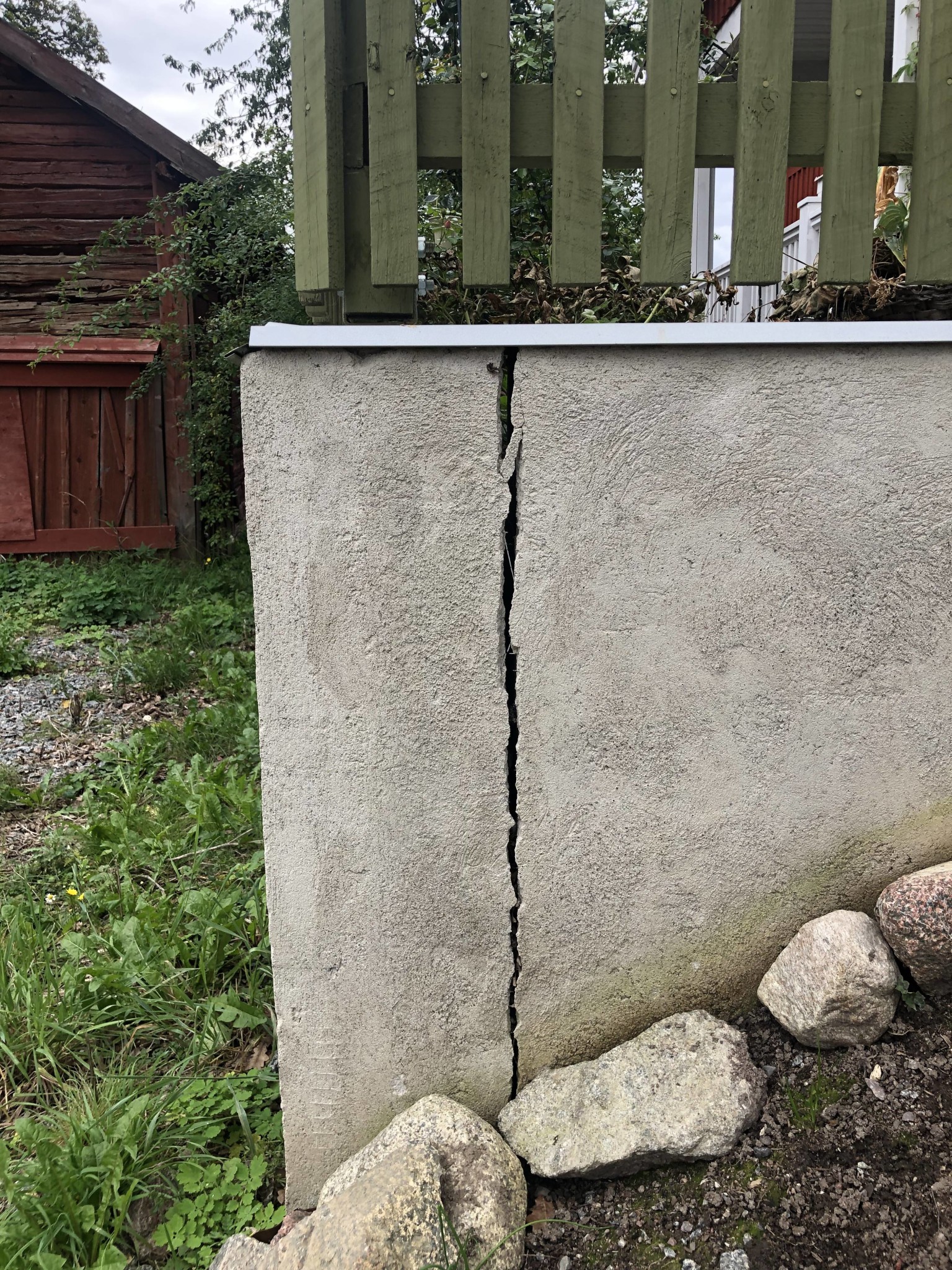 Nu, två år senare, är det en glipa på cirka 3cm mellan delen som går längst med huset och den som går in mot huset, enligt bilder nedan: