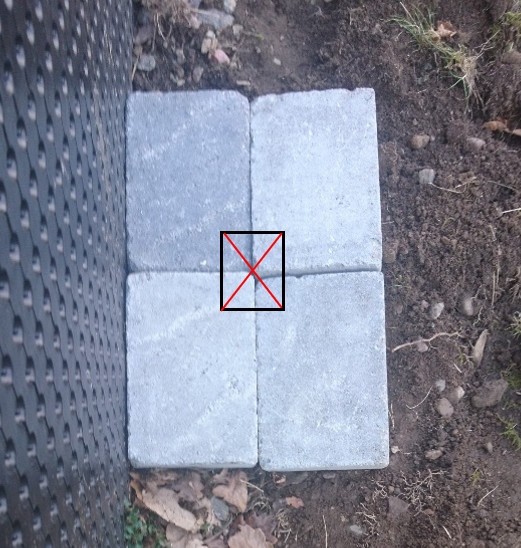 https://www.bauhaus.se/stolpspjut-nsh-eco-46x46x550mm). P.g.a det form på ben så tänkte jag att det var lätt att få kantstenen är bli snygg runt själva spjutets fot. Men då insåg jag att spjutets "flänsar" hamnar 45 grader fel. Se röd illustration på bilden nedan.