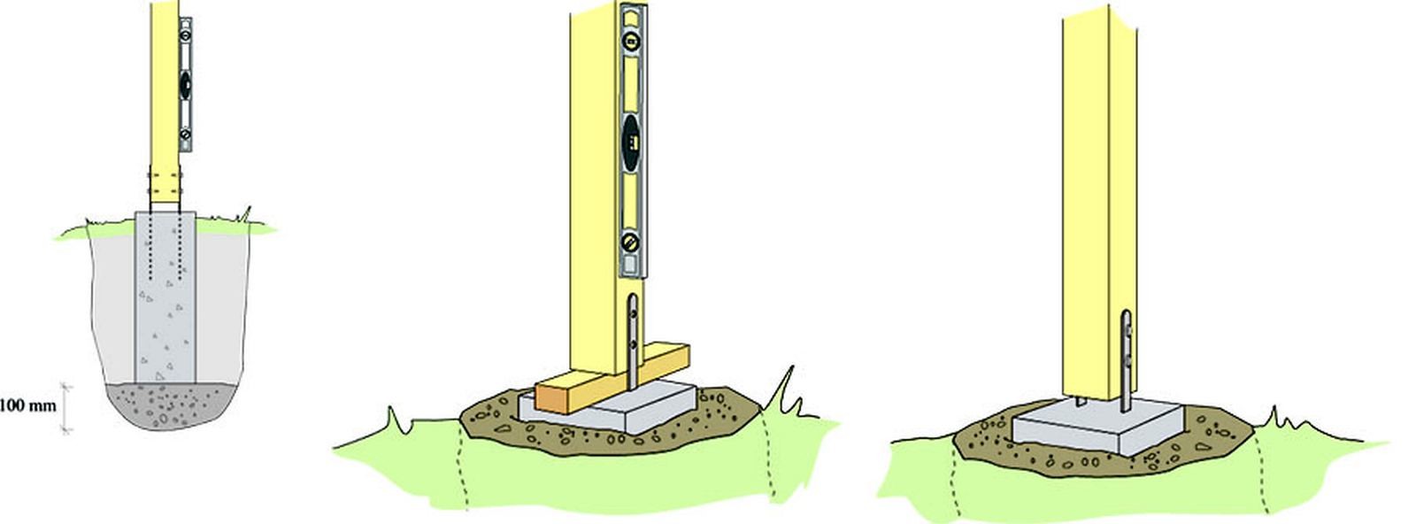 Stolpe till pergola på betongplint, som sticker upp mer än "vanligt"