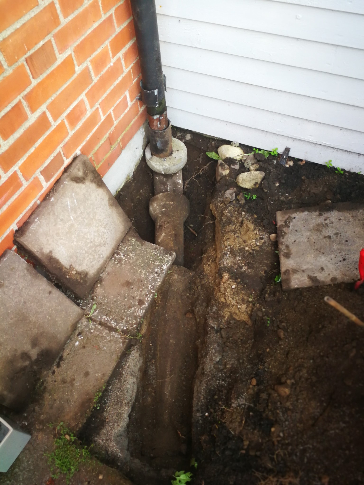 Jag har ett stuprör som går ner i marken.Såg att vattnet inte gick ner när det regnade nu för någon dag sedan. Vattnet sprutade upp mot huset istället. Tog bort stupröret och tittade ner. Såg att det var en böj på direkten så kom inte åt. Grävde upp en bit och såg att det var helt täpt med jord i rören. Ganska hårt packat.
