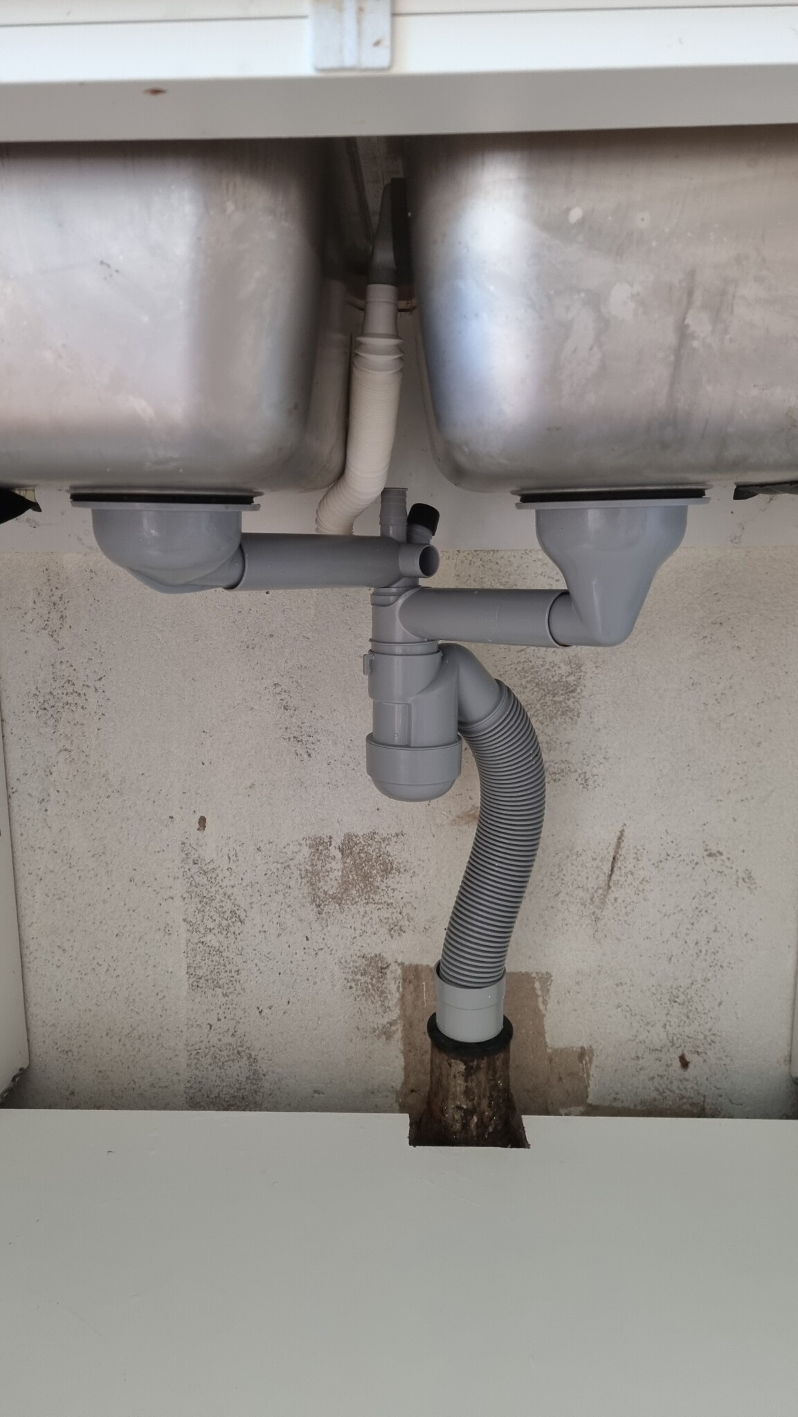 En annan tanke är att man kanske kan göra något med vattenlåset, alltså en inställning, som tillåter vattnet att gå igenom korrekt, men alla justeringar jag gör får fallet på rören till diskhon att få bakfall.