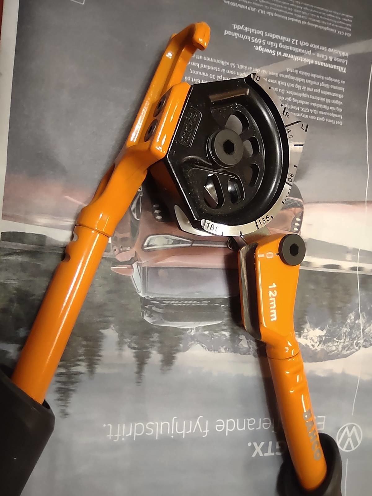 Denna ser rejäl ut. Om man ändå bara ska böja rör hemma så att man har en arbetsbänk att sätta fast den i, annars rätt så opraktisk. 10mm,12mm,14mm,16mm,19mm, 22mm, 25mm Med 860 mm långt handtag lär ju 12 mm glödgade kopparrör gå lätt.