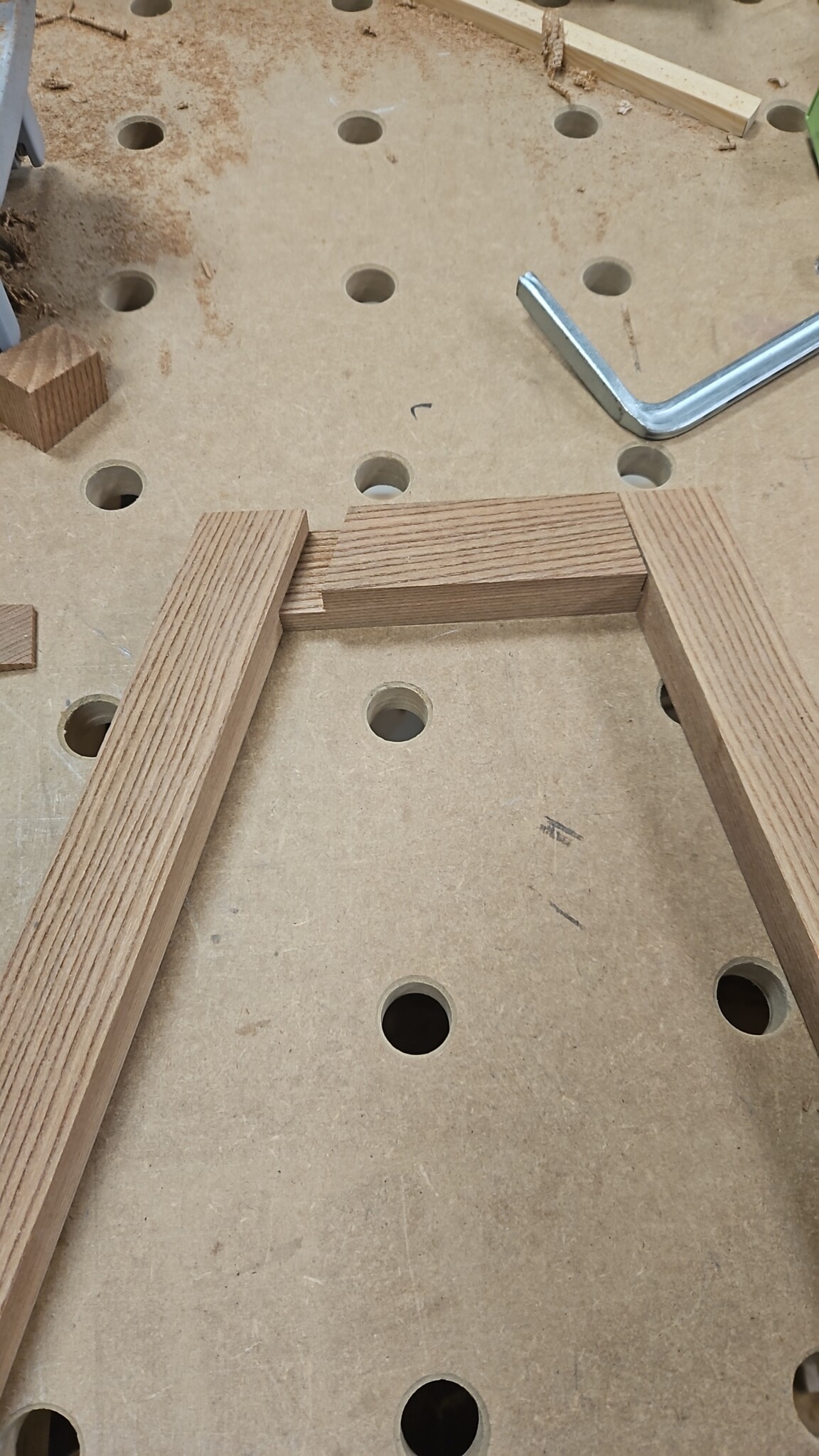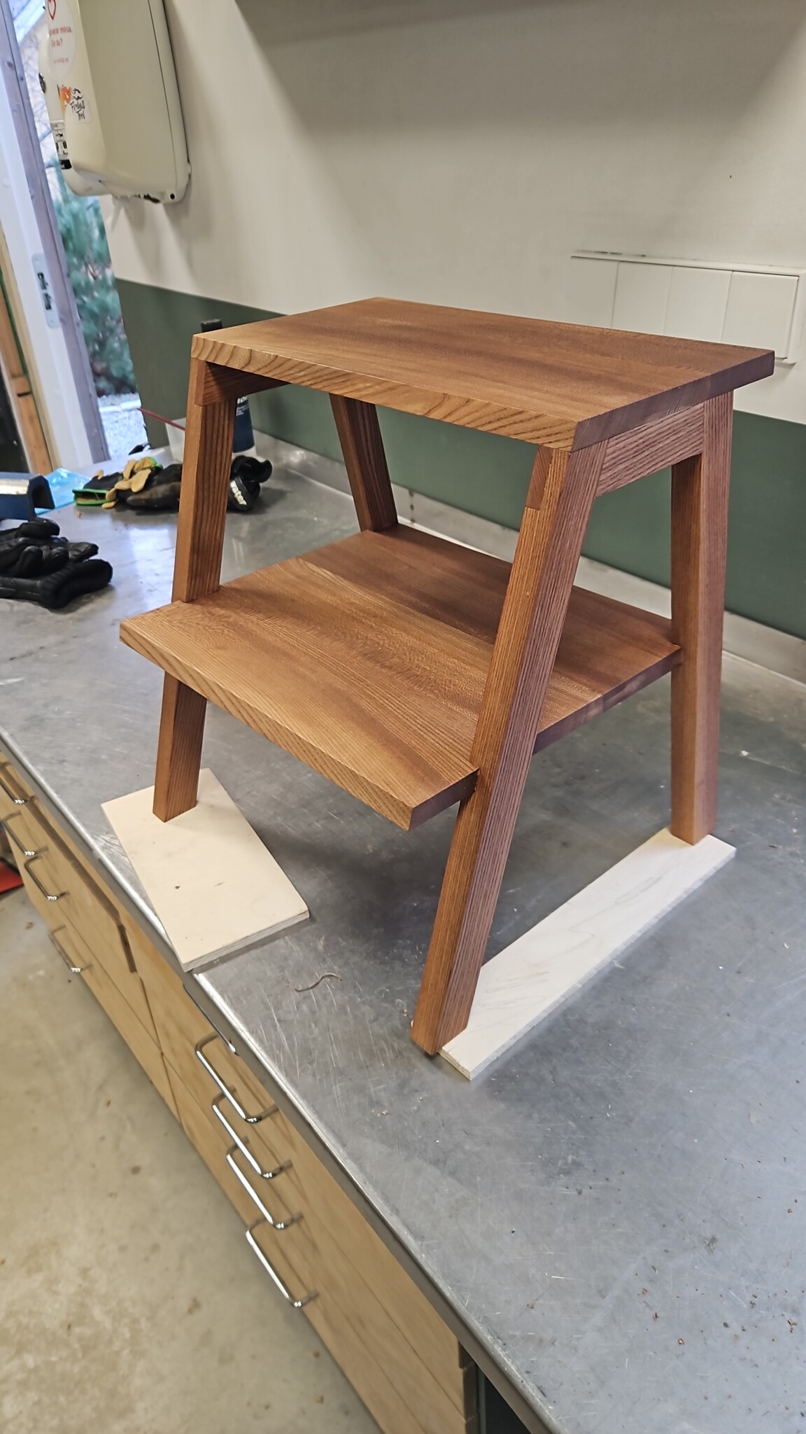 Byggde ett matbord av alm och fick lite material över. Det belv en pall till min son för att han ska kunna vara med i köket. Har inga bilder på processen men allt material sågades upp och sedan handhyvlades till rätt dimensioner. Intressant att använda grundhyvel för första gången för att få till fogarna. Väldigt befriande att i huvudsak bara använda handverktyg.