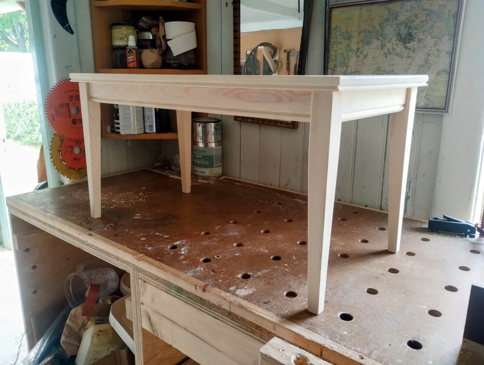 Jag har försökt bygga bordet i hyfsat "liknande" stil till övriga möbler i huset, tex köksbordet, som är i lantlig stil.