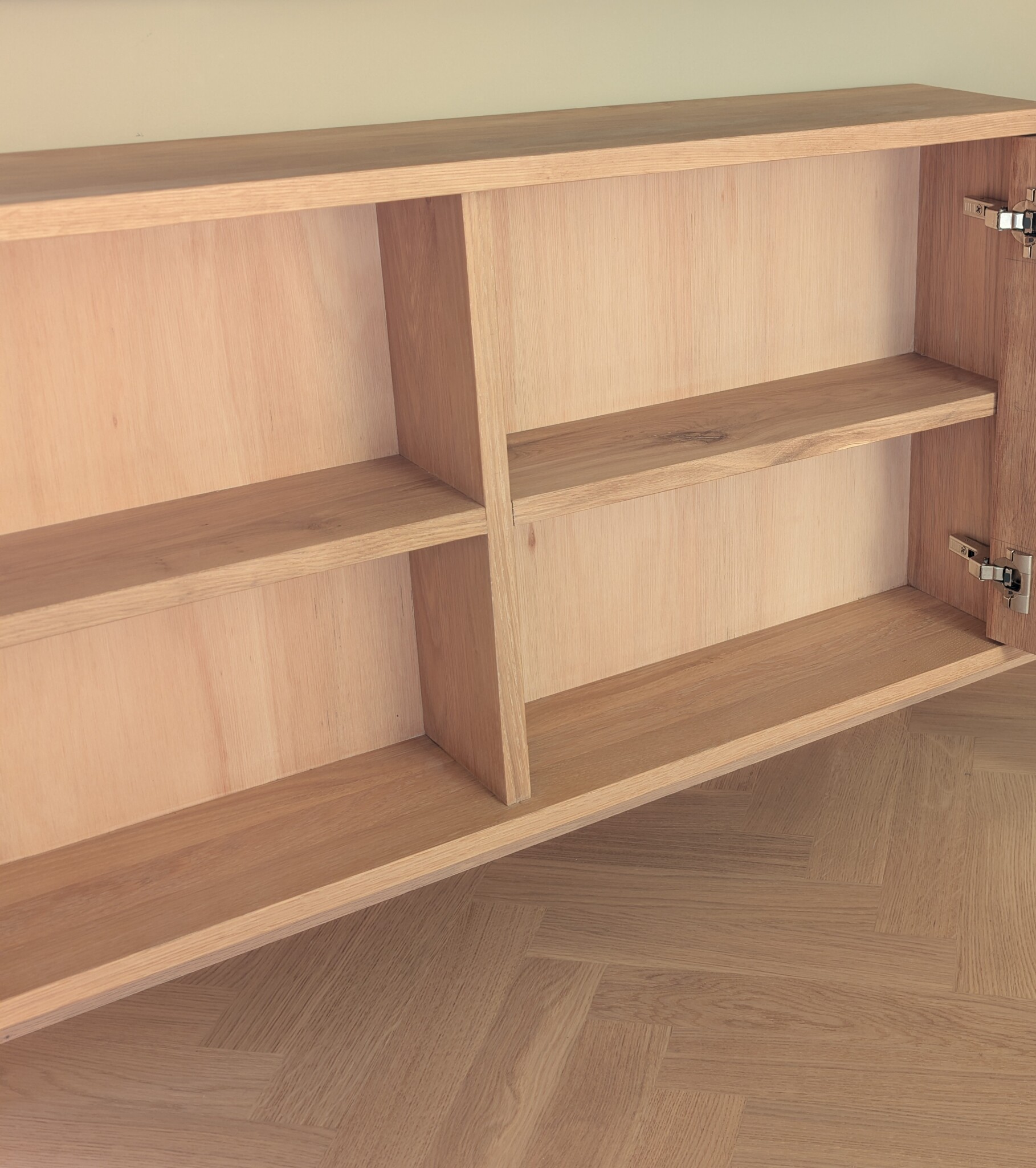 Bänken är byggd av 20mm massiv ek förutom bakstycke som är nån typ av 6mm lövplywood jag hittade på brädgården. Har sågat och hyvlat och limmat ihop allt själv, även luckorna, mest för skojs skull. Materialet jag använt är ek jag köpt av en lokal snubbe som sågar upp saker själv. Tror bänken väger typ 25 kilo.. Hänger på väggen mha sk "french cleat" som är infälld 25mm i bakkant.