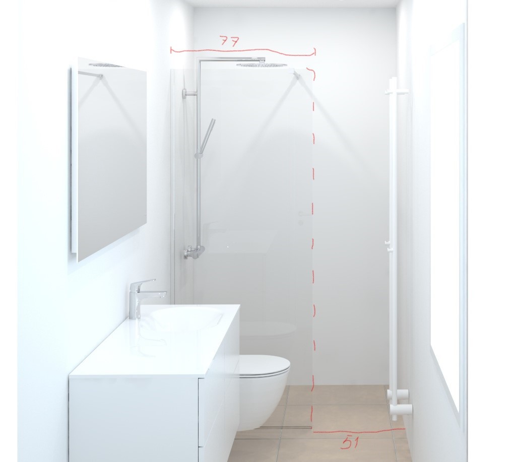 Samtidigt är mitt alternativ att köra på en 77cm fast vägg som då lämnar 51 cm öppning in till duschnischen...
