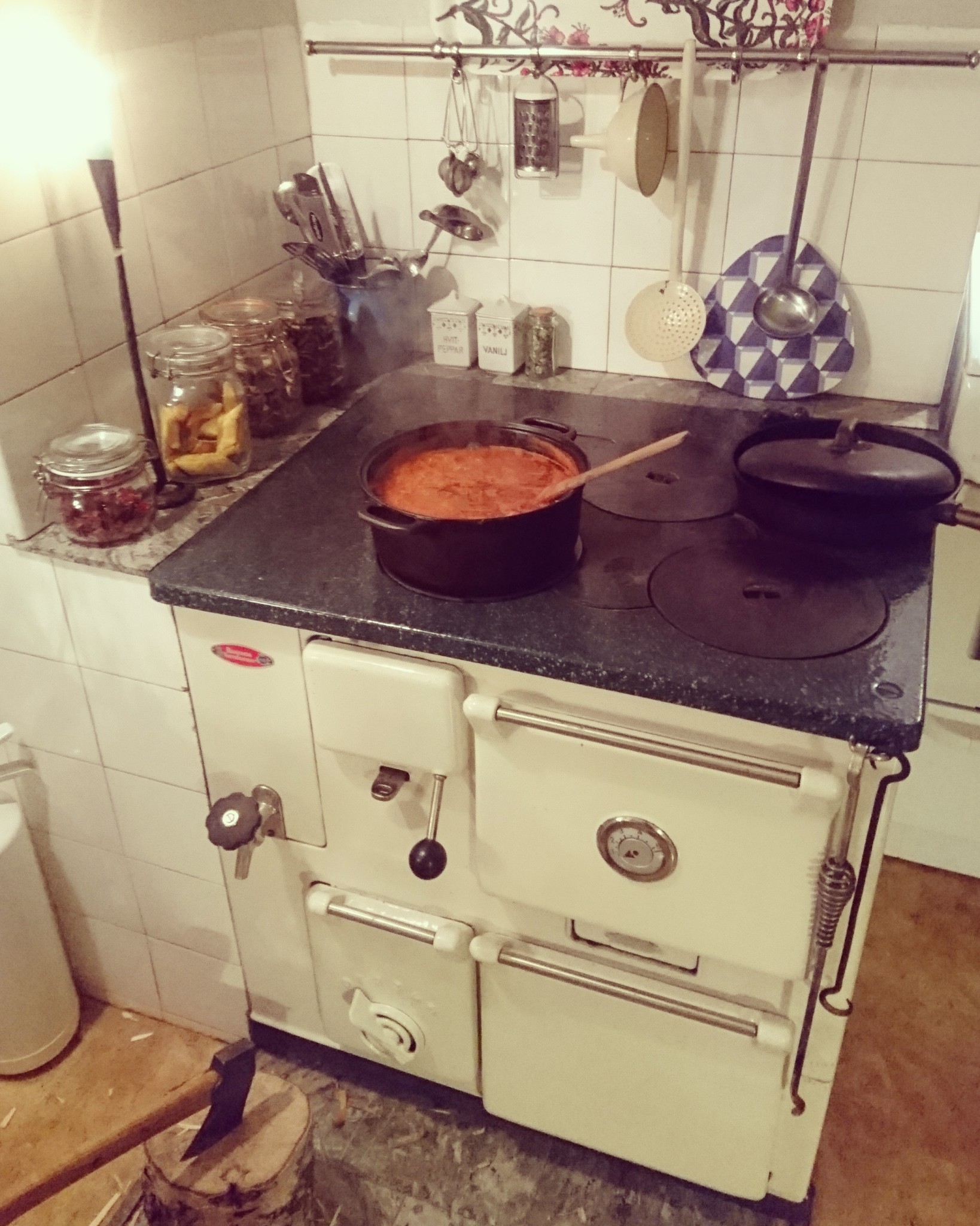 Några funderingar som återstår: rökkanalen är på minsta stället, vad jag kan se 15x15cm, vad ska jag använda för storlek på insattsröret? Är det beroende på effekten på köksspisen/kakelugnen eller ska jag ta så grovt som möjligt? Emaljerad vedspis från 50-talet.