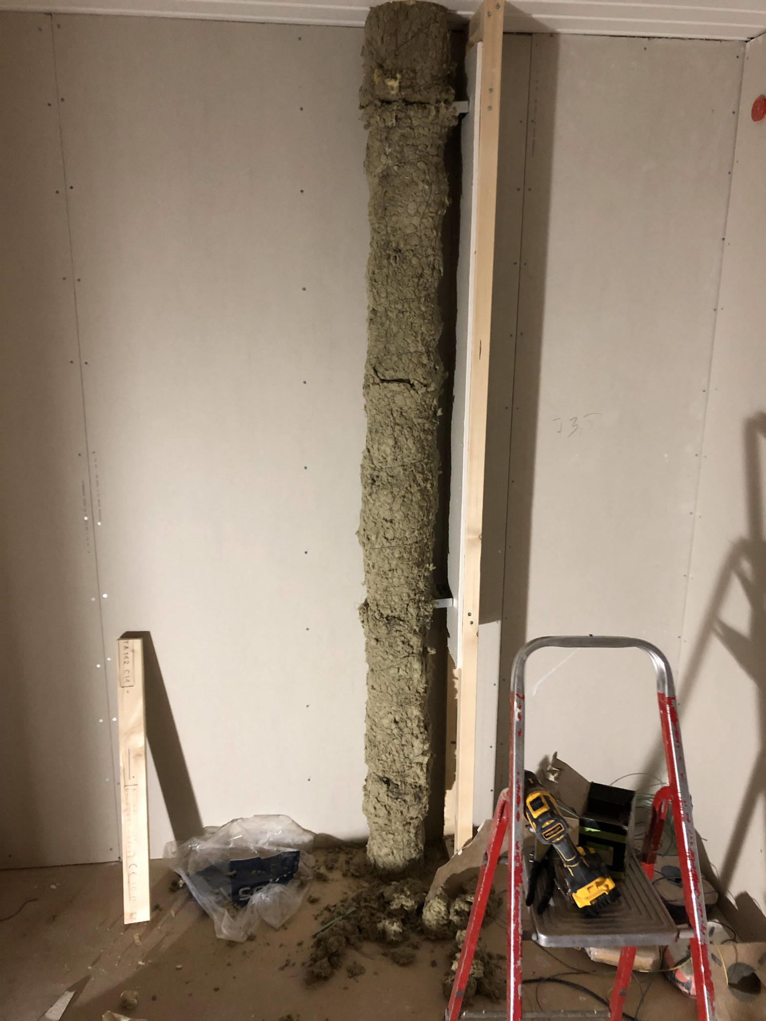 För er som läst tidigare inlägg i tråden vet att vi att flyttade runt en del saker i köket på nedervåningen. Exempelvis bytte vi plats på spisen. För att undvika onödiga 90-graders-svängar (skapar tryckfall och försvårar rensbarhet) på imkanalen valde jag att göra en ny förläggning av imkanalen genom övervåningen och upp på vind.