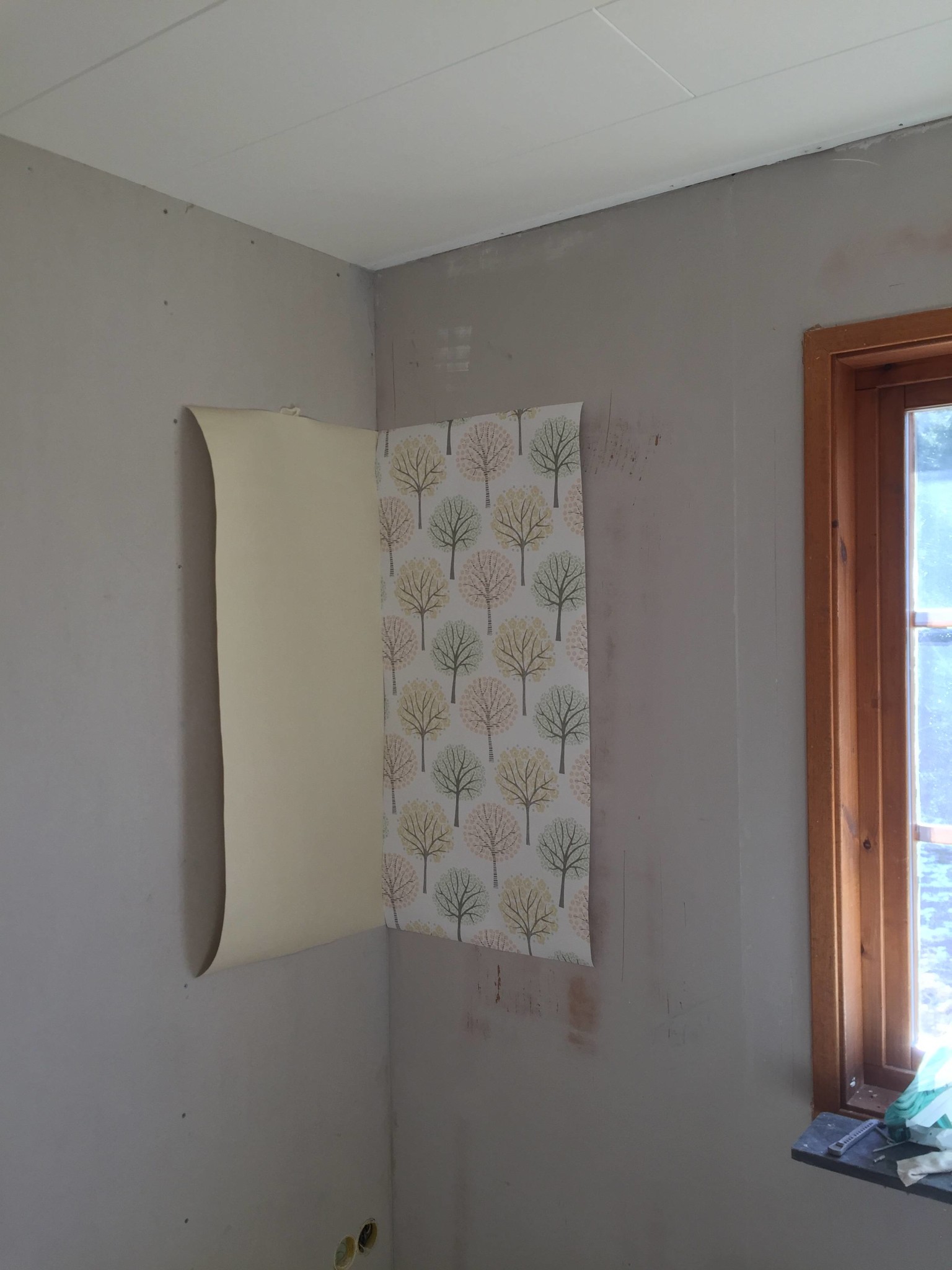 Som tur var så hade vi inte enbart Helsinki-tapet på övervåningen. Övriga tapeter gick faktiskt överlag bra att få bort genom att spruta på hett vatten och därefter jobba bort med tapetborttagningsverktyg.