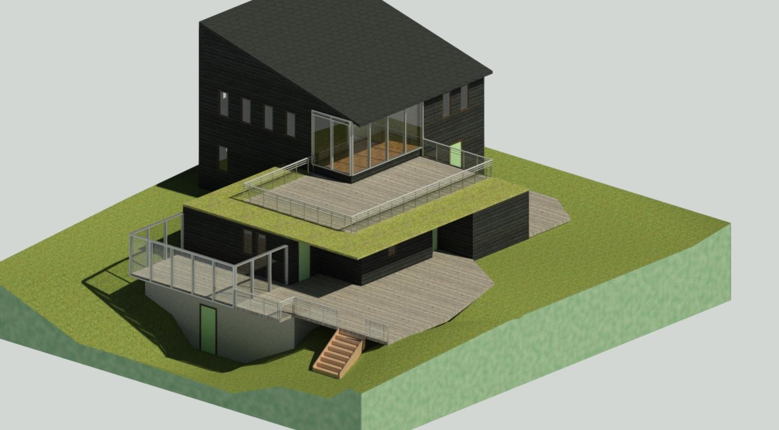 Det började med våra egna skisser och ritningar. Jag ritade i Autodesk Revit och min fru gjorde modeller i papper (hittade ingen bild på dem, men de blev ganska fina och var bra att ha när vi pratade med arkitekter). Man kan se tydligt att det gamla huset är lågt jämfört med ett nytt med normal innertakhöjd.