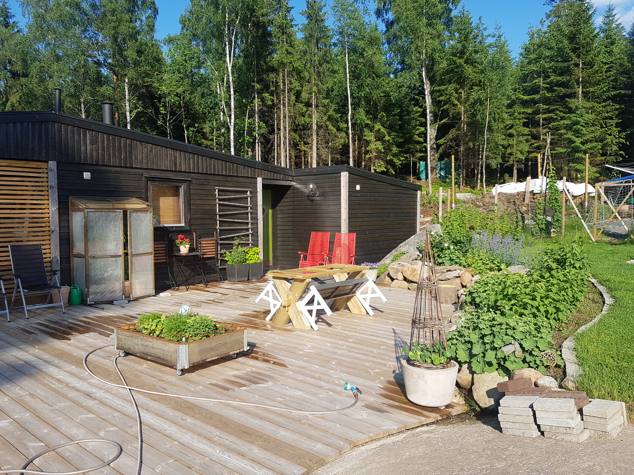 Kap & gersåg hade vi sen tidigare dock men inte helt felfri. Jag beställde lite reservdelar från Bosch och nu är allt utom lasern ok. Överväger en som kan kapa tjockare virke dock, hade problem förra sommaren när jag skulle kapa 95x95 stolpar, vilket den inte klarade.