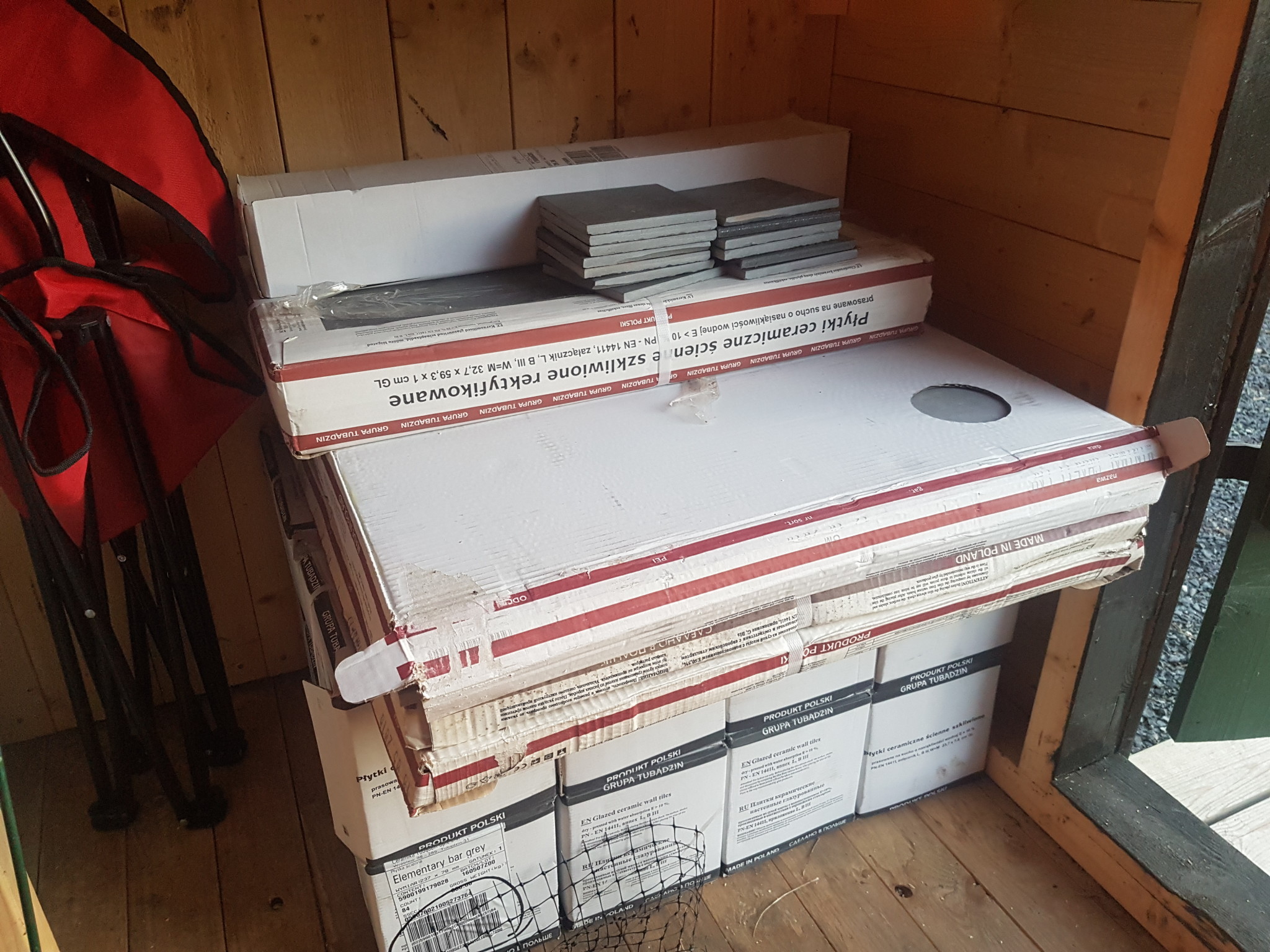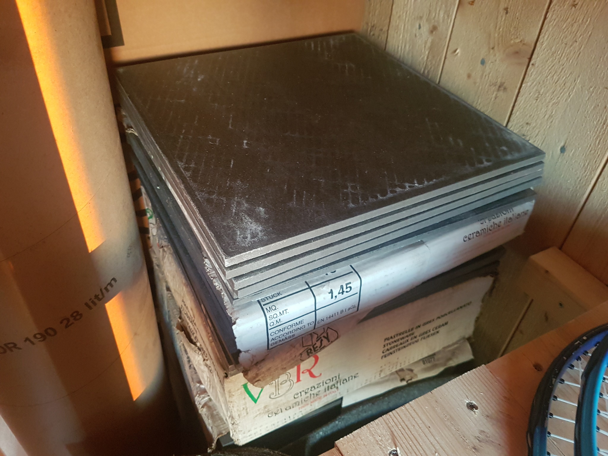 Kakel och klinker som vi tänker sätta själva i källare och kanske i köket.