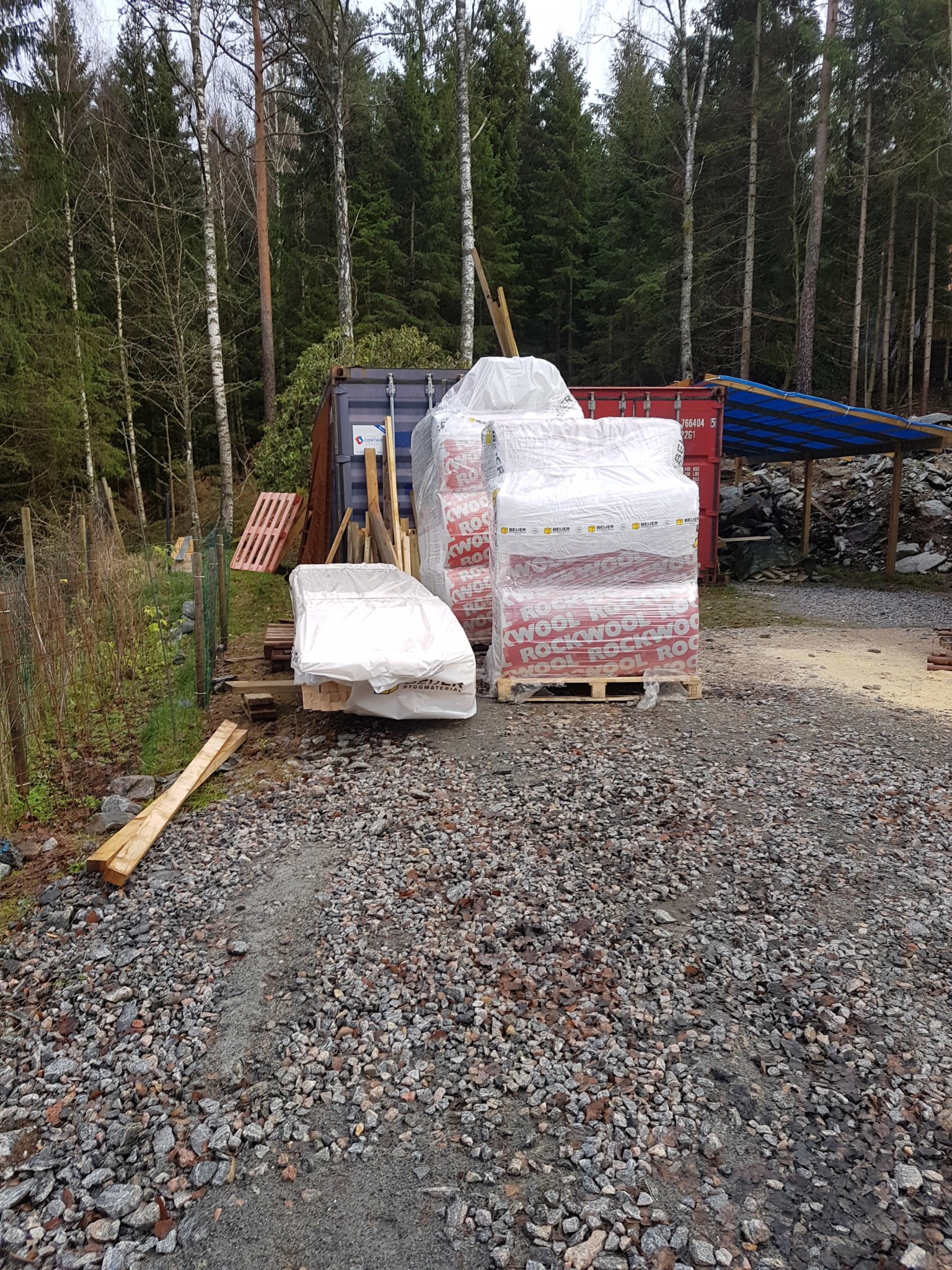 Avfuktaren har gått tre dagar nu och samlar på sig runt 5-10 liter vatten varje dag, verkar som det redan avtar en del. Övervåningen är redan torr, så vi börjar stoppa in isolering på måndag. Då kommer leverans med isolering, plast, reglar för innerväggar m.m.
