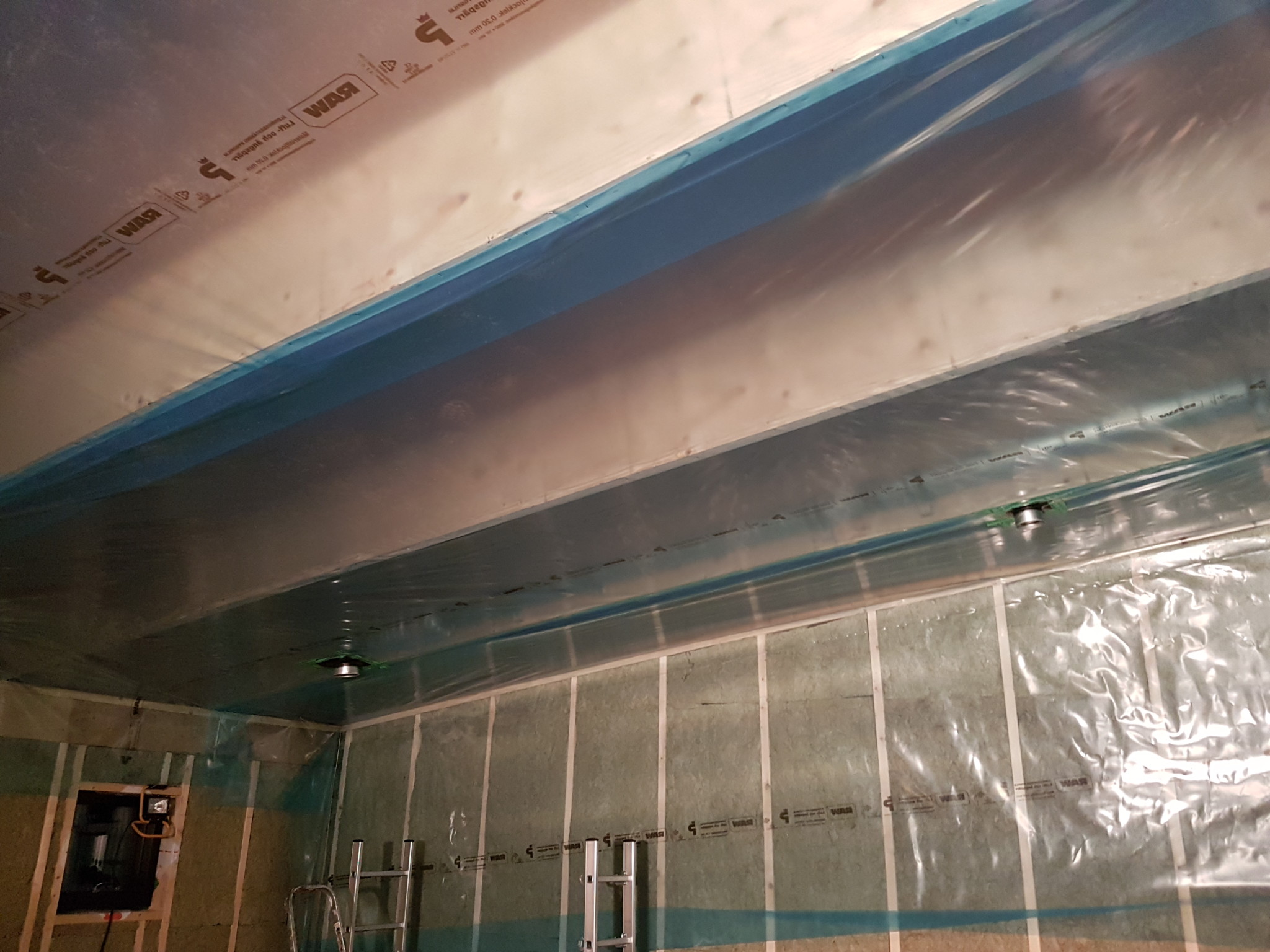 Köpte gummimanschetter för genomföringarna av rören i ångspärren. Klart värt pengarna jämfört med att tejpa.