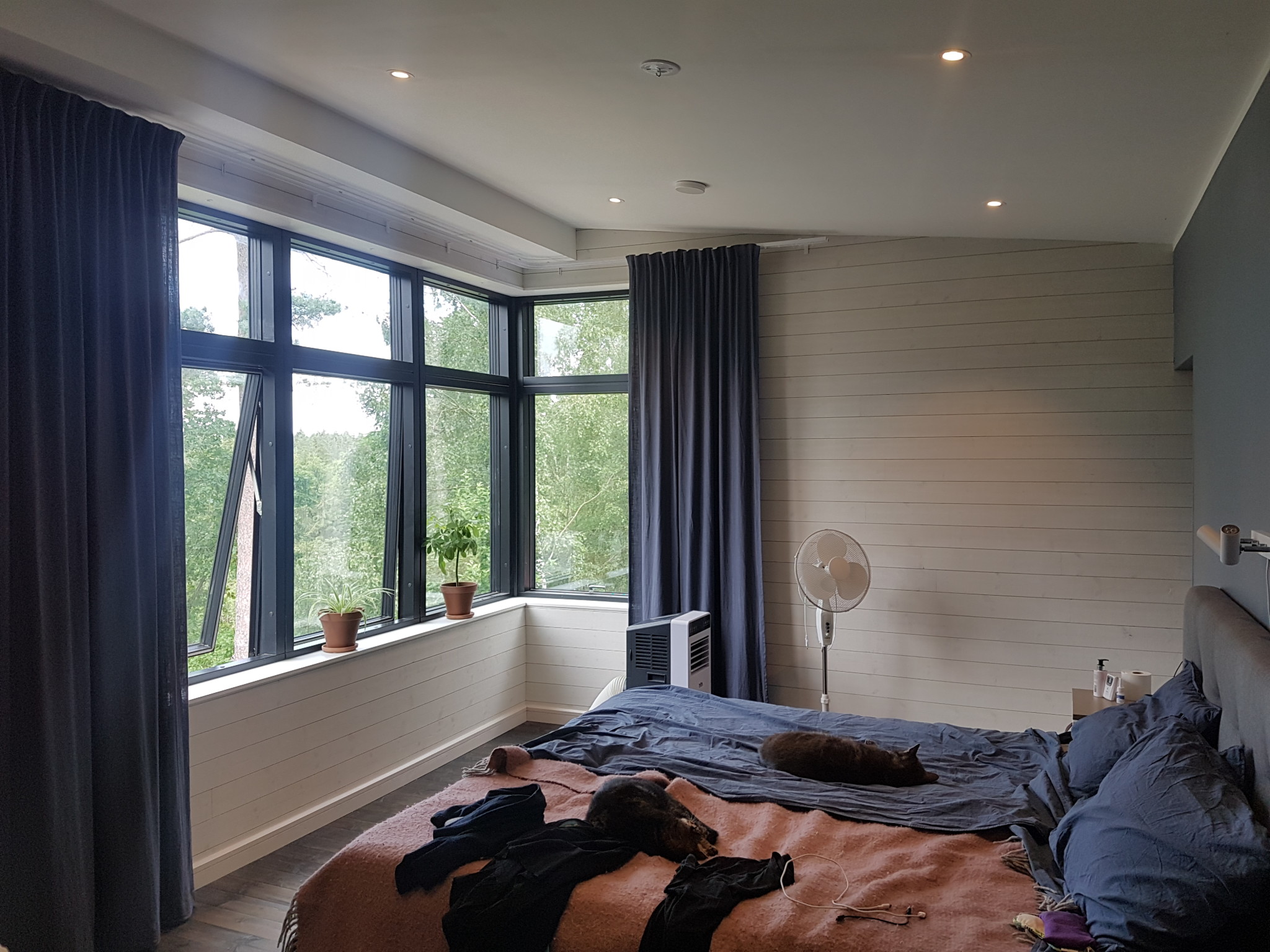 . Underbart att sova i nya sovrummet! Även om vi inte hade mörkläggning första natten