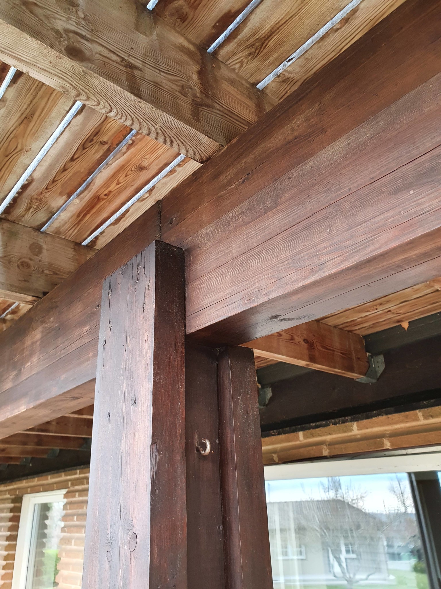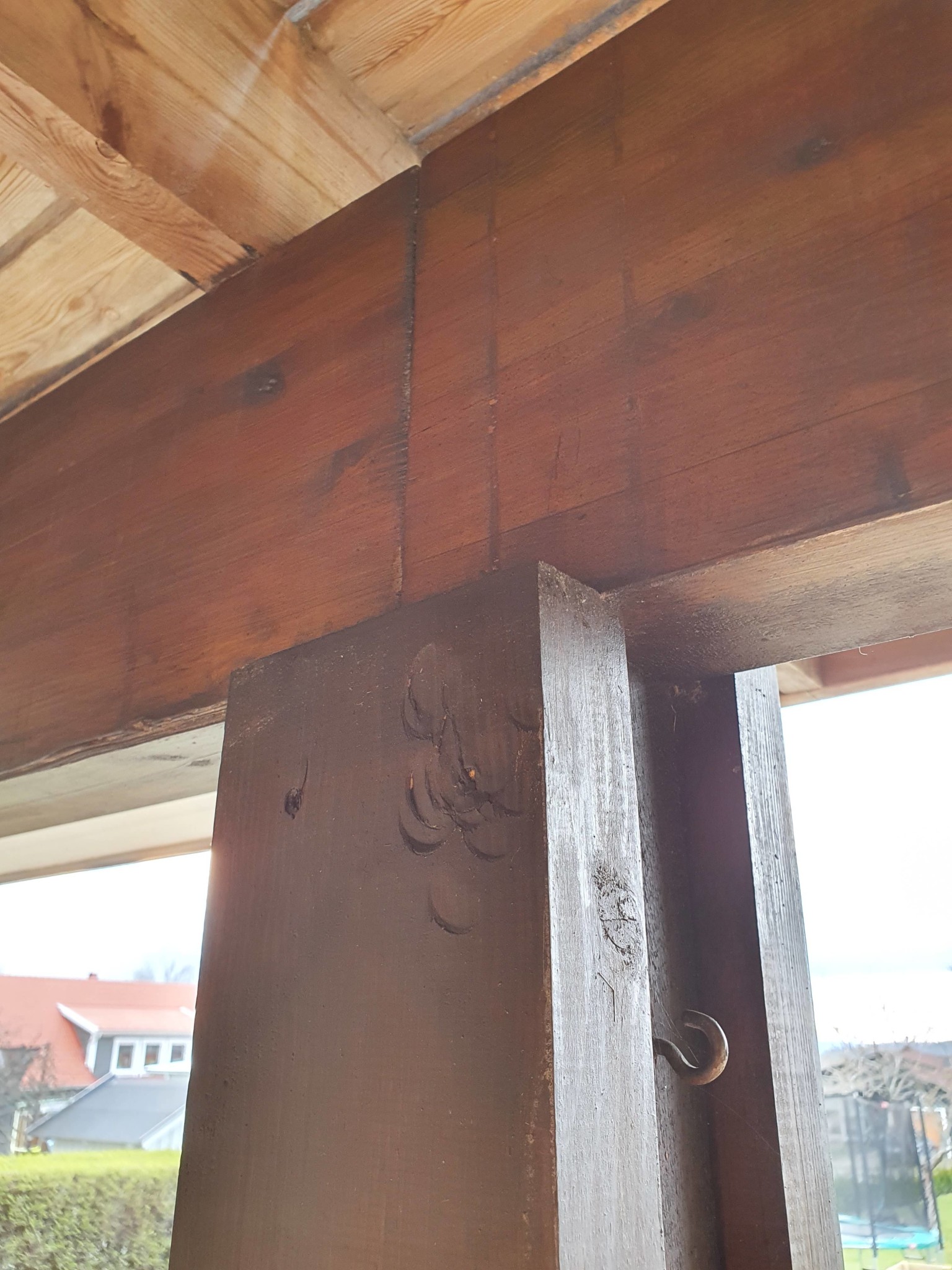 Jag tycker limträbalken känns aningen klen samt att den intr har något direkt väderskydd från ovan sista biten till den invändiga pelaren.
