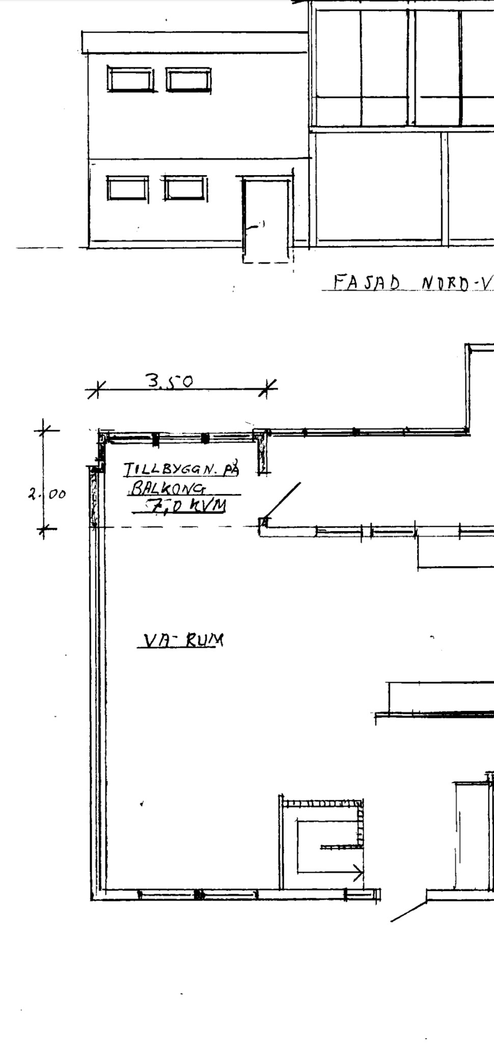 Om vi tar det invändiga måttet på 1600mm (skrev jag inte det någonstans?) så sitter balken på ca 1400mm ut vilket ger ett överhäng på 200mm innan den "nya" ytterväggen börjar.J justusandersson skrev:Man behöver känna till måtten i djupled också för att kunna kontrollräkna. Allmänt kan man säga att en limträbalk med den längden och de dimensionerna behöver en last på ca 170 kg per meter för att böja ner 6-7 mm. Det är garanterat för dåligt med hänsyn till att en balkong som denna bör ha varit dimensionerad för minst 400 kg per kvm. Att balken delvis är vädermässigt oskyddad är en stor nackdel eftersom det försvagar bärförmågan.