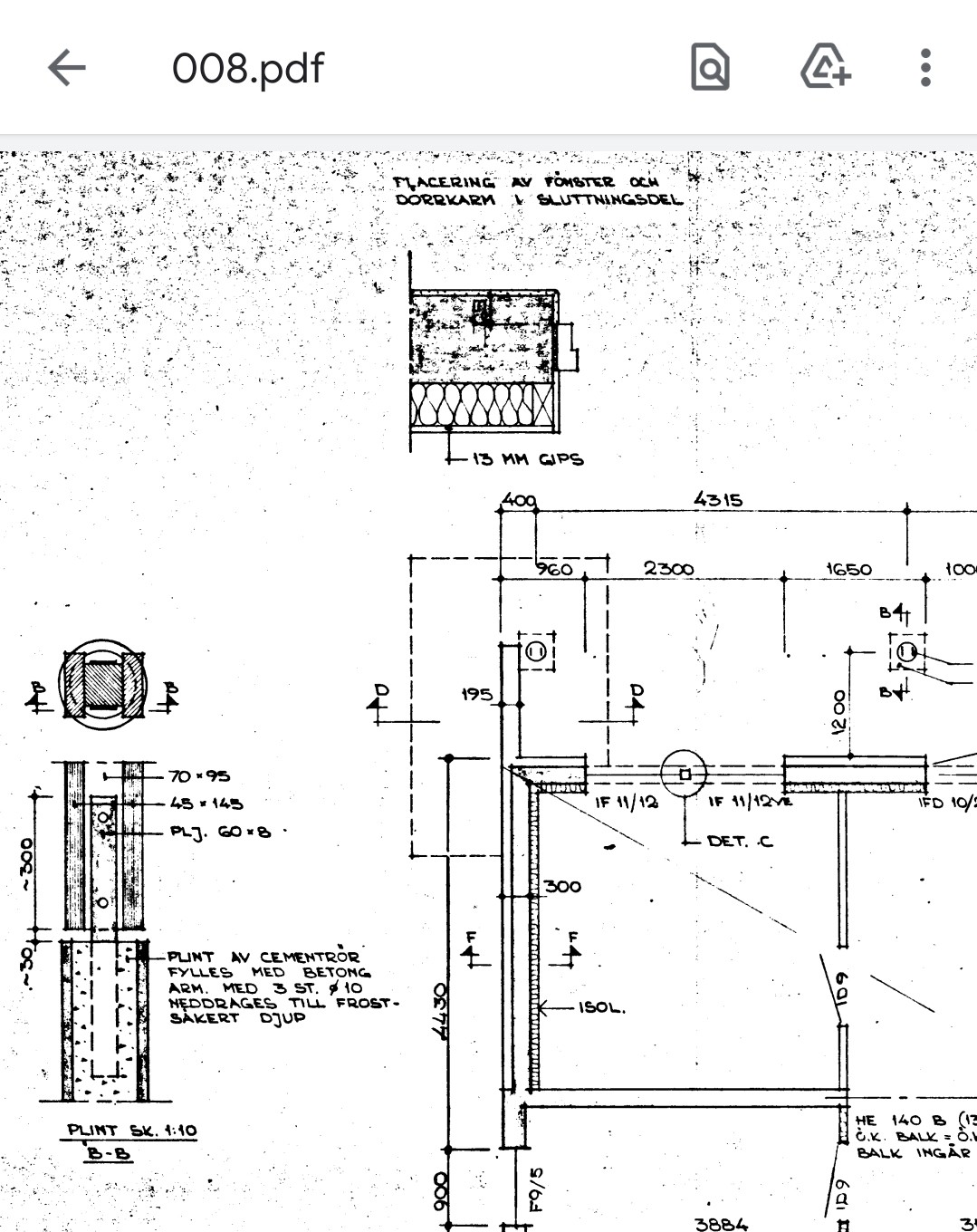 Om jag tänker om och gjuter plint på halva avståndet, stämpar upp och sätter en pelare med samma konstruktion som övriga. Funkar dimensionerna?J justusandersson skrev: