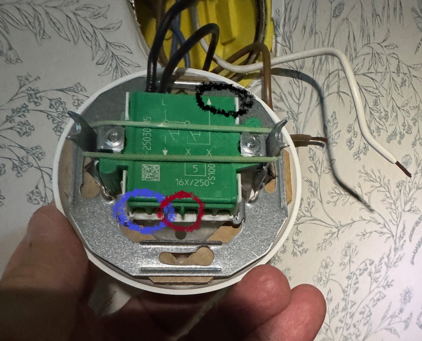 Men det är två knappar på dosan och två lampor som ska tändas. Då antog jag att det svartmarkerade var för ena lampan och det blåmarkerade var för den andra.zarkov skrev: