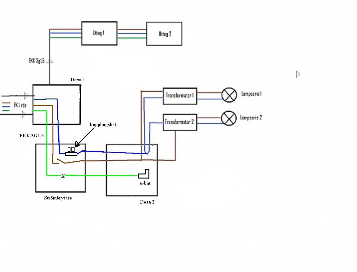 Vet inte riktigt vad jag ska göra mellan strömbrytaren och transformatordosan. Vad gör jag med kablarna som inte är tändtråd och fas. Ska jag sätta ubåtar? Alltså vad händer med ändarna? Ska de hänga löst?