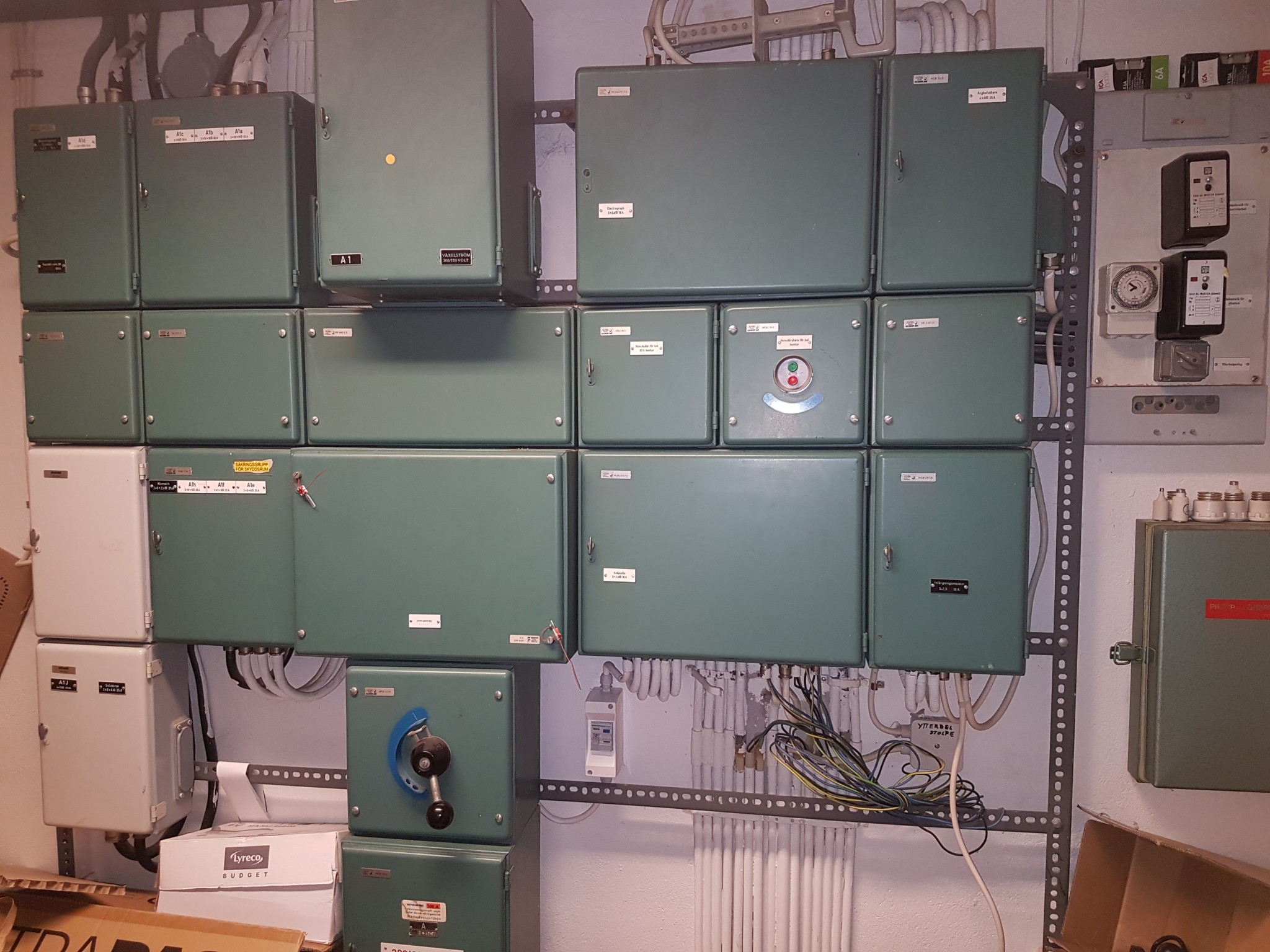 Elcentralen för hela lokalen finns i utrymmet och det dras ny el till tre förbrukare därav endast JFB på den ledningen och inte på all befintlig utrustning.L Leif i Skåne skrev: