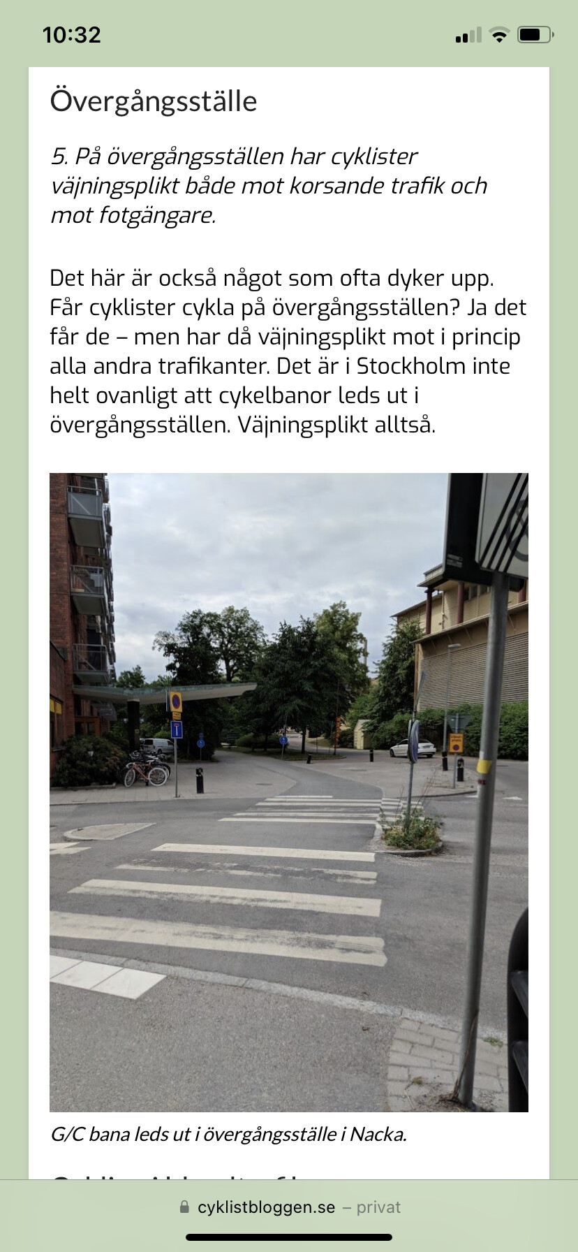 Däri ligger förmodligen problemet. Det är förbjudet att cykla på trottoar och även på övergångsställen.S SueCia skrev: