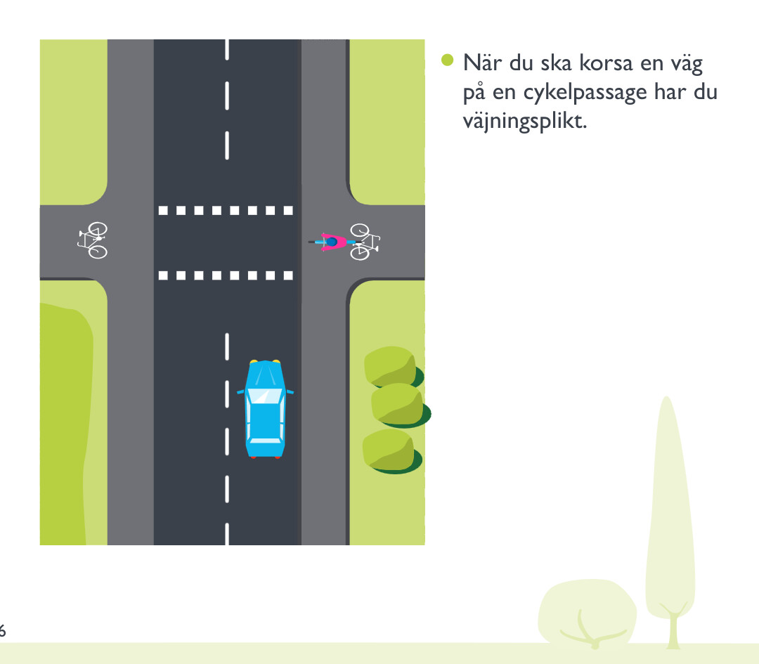 Fordonsförare har väjningsplikt mot dig som cyklar och är på eller på väg ut på en cykelöverfart.