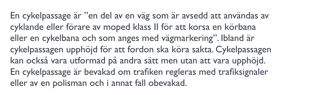 Eftersom det uppenbarligen är fråga om en cykelpassage så kan vi väl hålla oss till att reda ut reglerna kring dom?