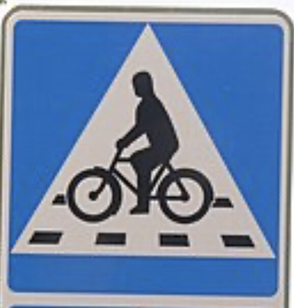Jag tog för givet att hennes väjningspliktsskylt och hajtänderna är tillräckligt för att hon ska ha hundraprocentig väjningsplikt mot mig som cyklist, och det verkar även transportstyrelsen ha tyckt för några år sedan, men sen kom en tingsrättsdom där dom dömde till bilförarens fördel pga. att korsningen saknar "här cyklar man" skylt.