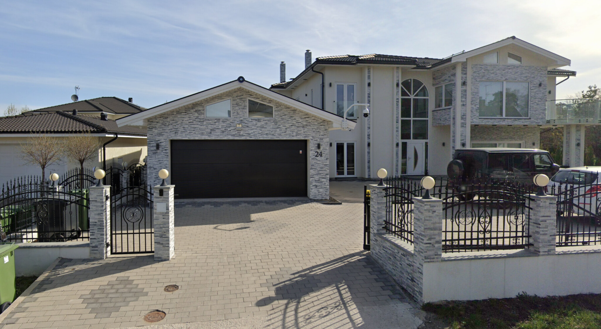 Det ser ut som några av de nya husen i Barkarby bakom lägenhetshusen i Barkarbystaden. Jag gissar på Barkarby även om jag inte känner igen just det huset. Syriansk gräsmatta och Geländewagen är kulturella markörer. Inte svennar. Gissar på ganska dåligt läge och liten tomt och att allt krut har lagts på stort hus med mycket bling. Gissningsvis genomgående marmorgolv och endast svart och vitt i inredningen. Och kanske lite guld.T TypRätt skrev:
