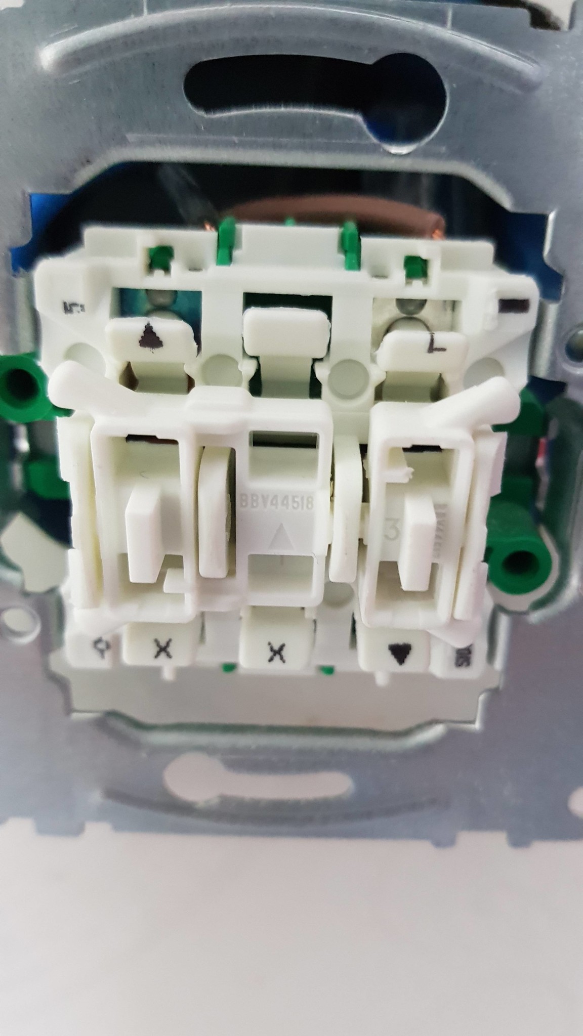 De kablarnar kopplad till strömbrytare. Det finns en vit kabel ( man ser inte den på bilden) kopplad till en nedåt pillen på bottom sidan.