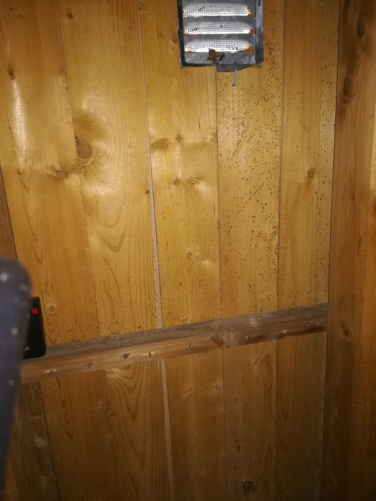 Hej! Jag behöver tips om varför kunde svarta prickar förekomma på ena väggen i vinden. Detta är på västra väggen, luften kommer in i vinden genom luckan som syns på bilden. Jag har en enklare takkonstruktion (plåt). Fuktigheten brukar följa uteluftens. Just nu är det 79% i vinden. Mätare står strax under metalluckan. Under vintertiden har det blivit så, det fanns inga prickor alls tills december. Har ni nån tips? För åtgärdning också?