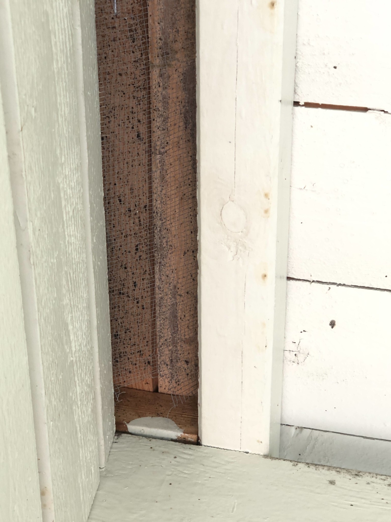 Fåglar har pajat näten och när vi inspekterade det såg vi svarta prickar (mögelangrepp?) på det obehandlade träet. Se foto: