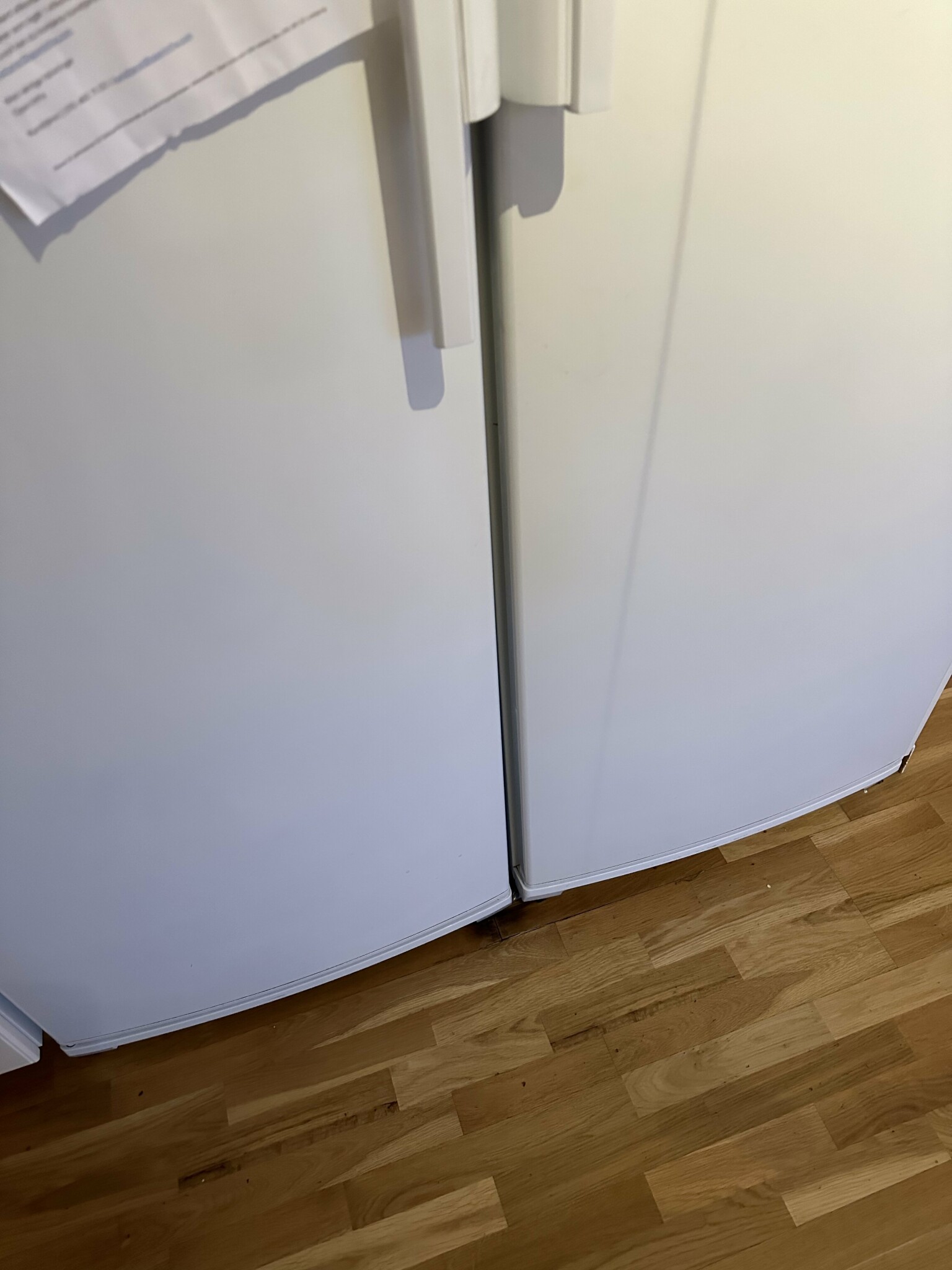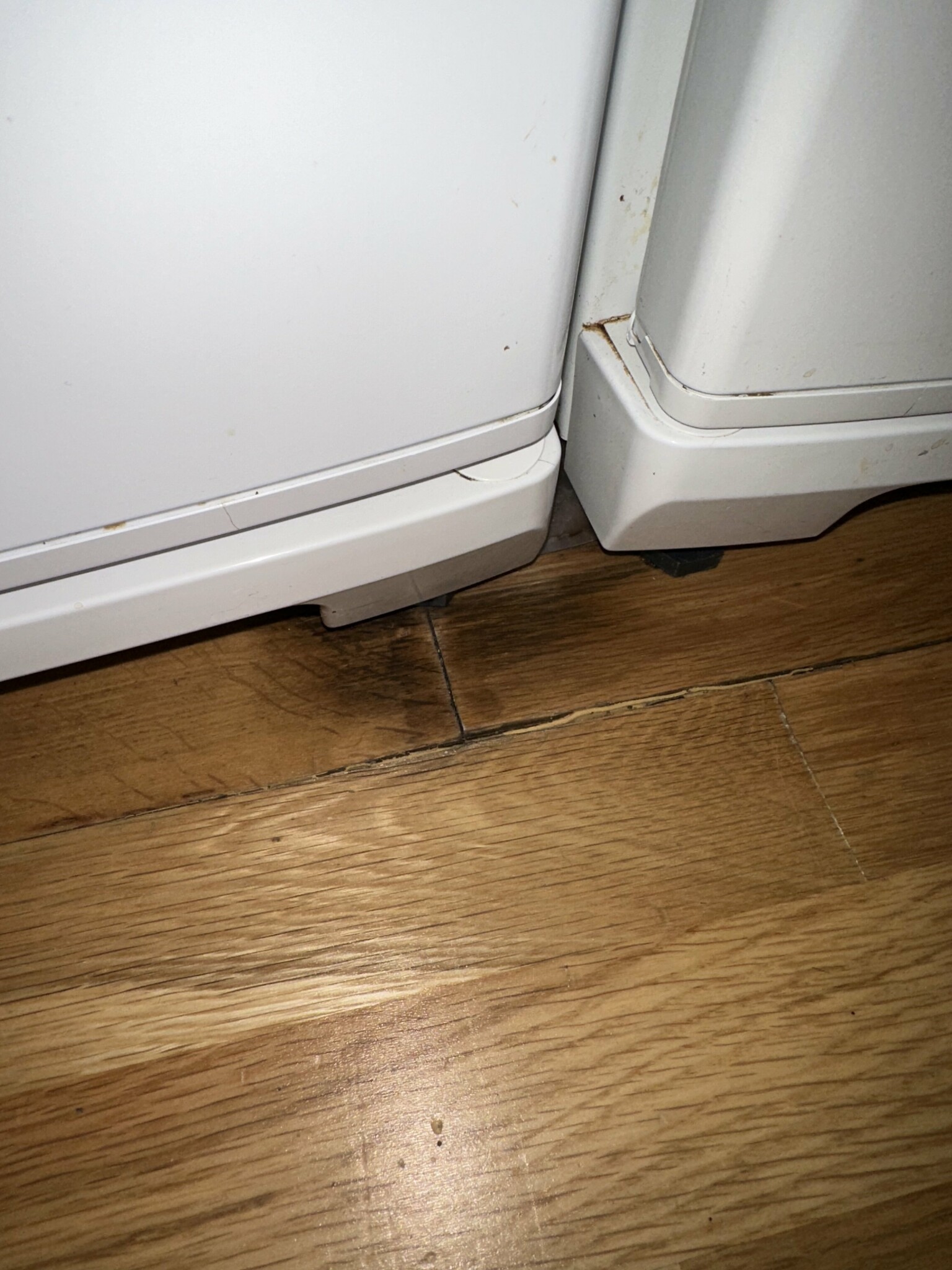 Är detta svartmögel? Träplankorna på bilden är precis under kylskåpet/frysen.