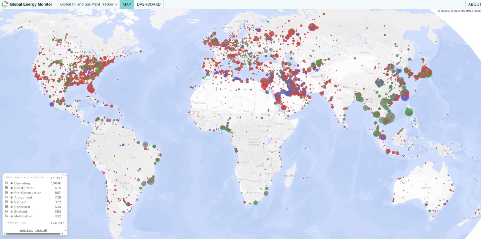 Och på kartan syns det tydligt både att gaskraft är mer spritt bland alla världens länder samt även i ökande i princip överallt.