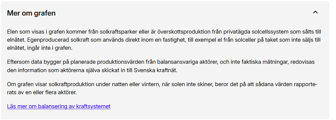 "Elen som visas i grafen kommer från solkraftsparker eller är överskottsproduktion från privatägda solcellssystem som sålts till elnätet."