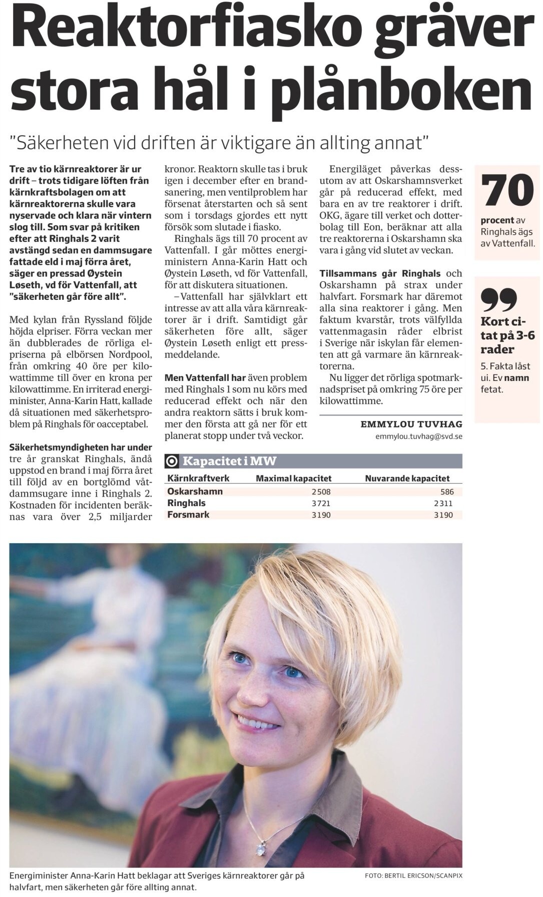 svenskan skrev en hel del om energi på 10-talet och hade ibland helsidesartiklar/-uppslag om Sveriges elproduktion